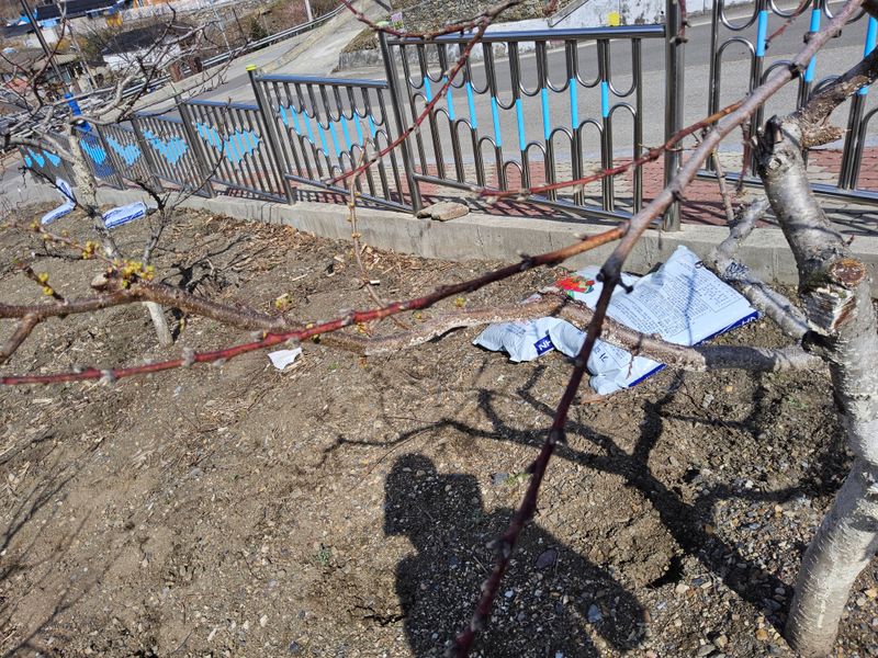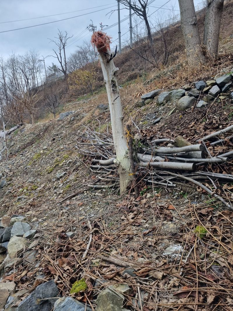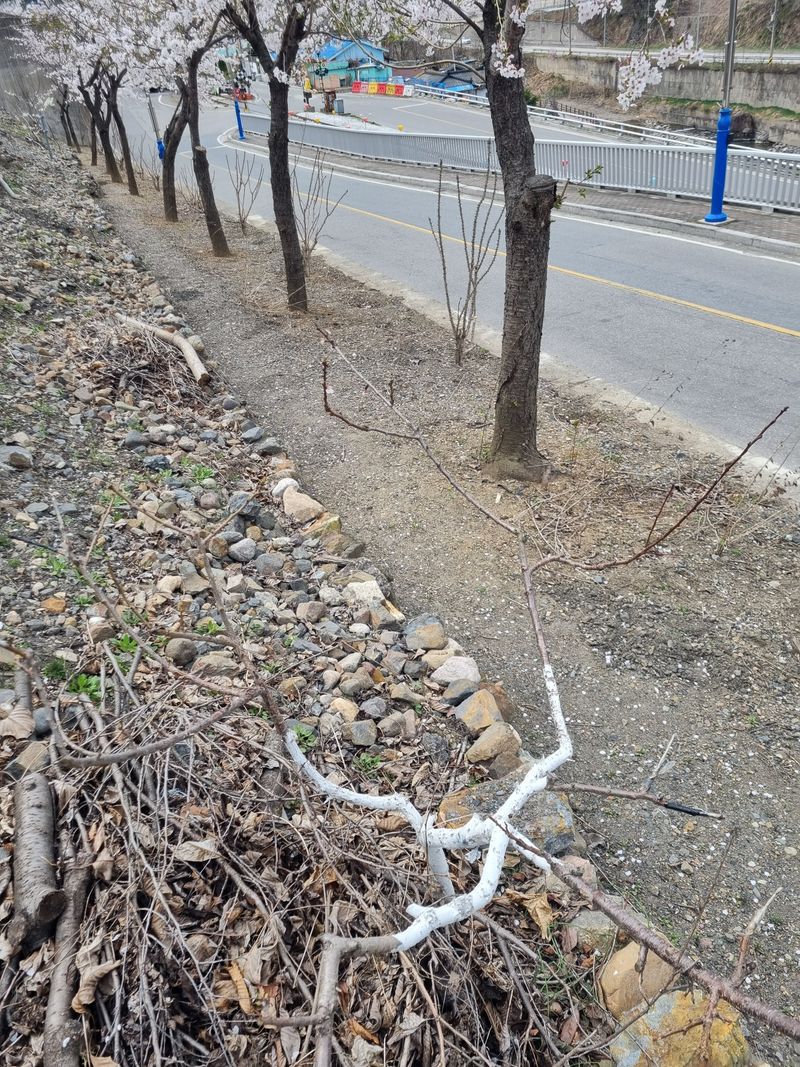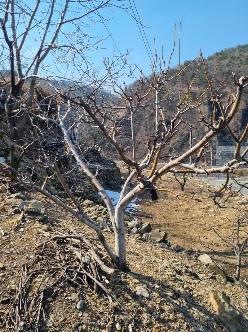 안녕하세요. 이곳 도계지역 계속 가뭄이 더욱 심해 짐니다. 저희집앞 도로건너 바로도로변에 기존 가로수인벗나무 에다 새로 준비된 겹 벗꽂나무 순으로 눈접으로 여기이 구간 기존 벗 나무가 40주 되는데 현재 모두 접목한것이 마무리 하게 되었음니다. 겨울 기간에도...