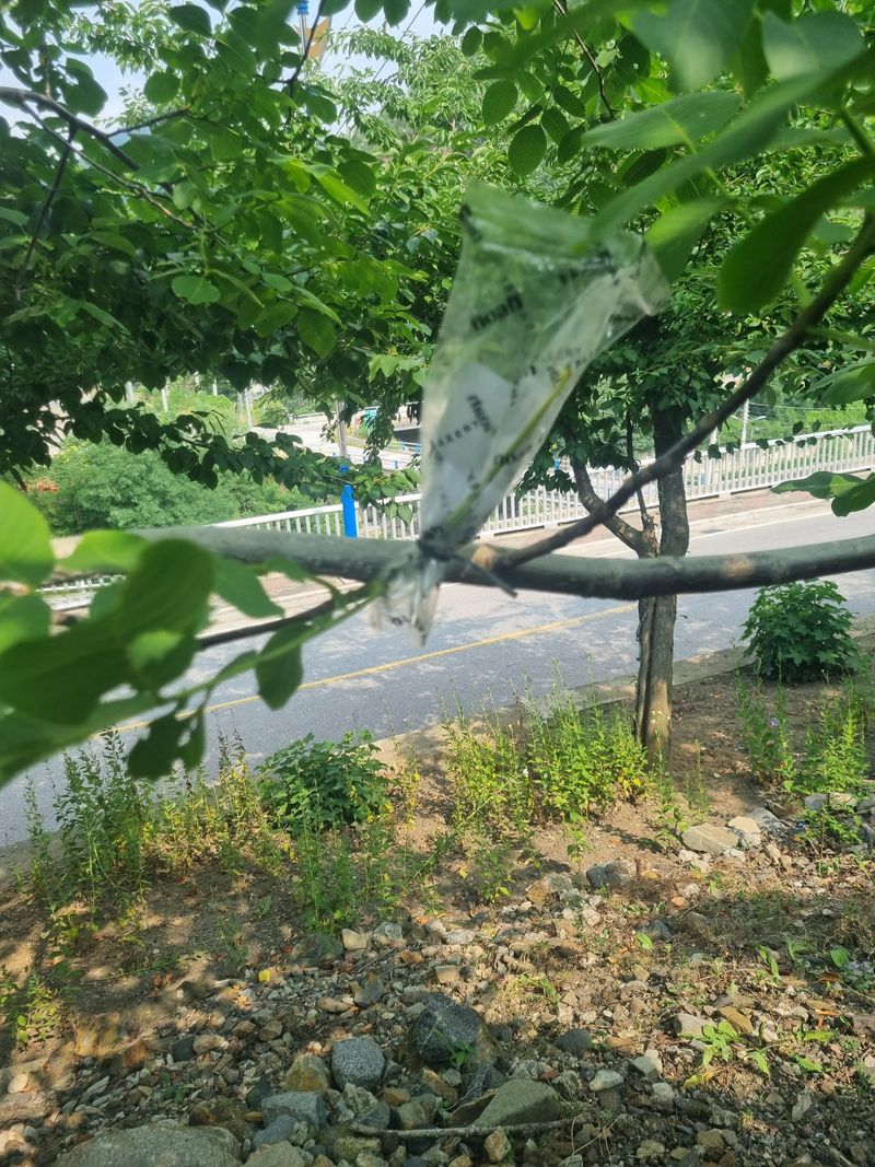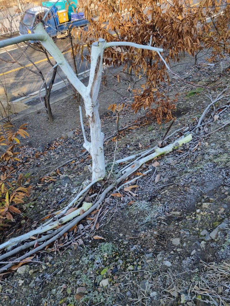 안녕하세요. 오늘은 저희집앞 도로건너변 가드레인밖에 대추나무 가지치기를 첨부사진처럼 작업하는데 일반대추 나무와 사과 대추나무 작업 하다말고 사과 대추나무를 고작 일반대추나무로 착오하는경우가 있었어요. 다시 정신가다듬고서 작업 하였어요. 작업후 모아둔 페가지들을 미...
