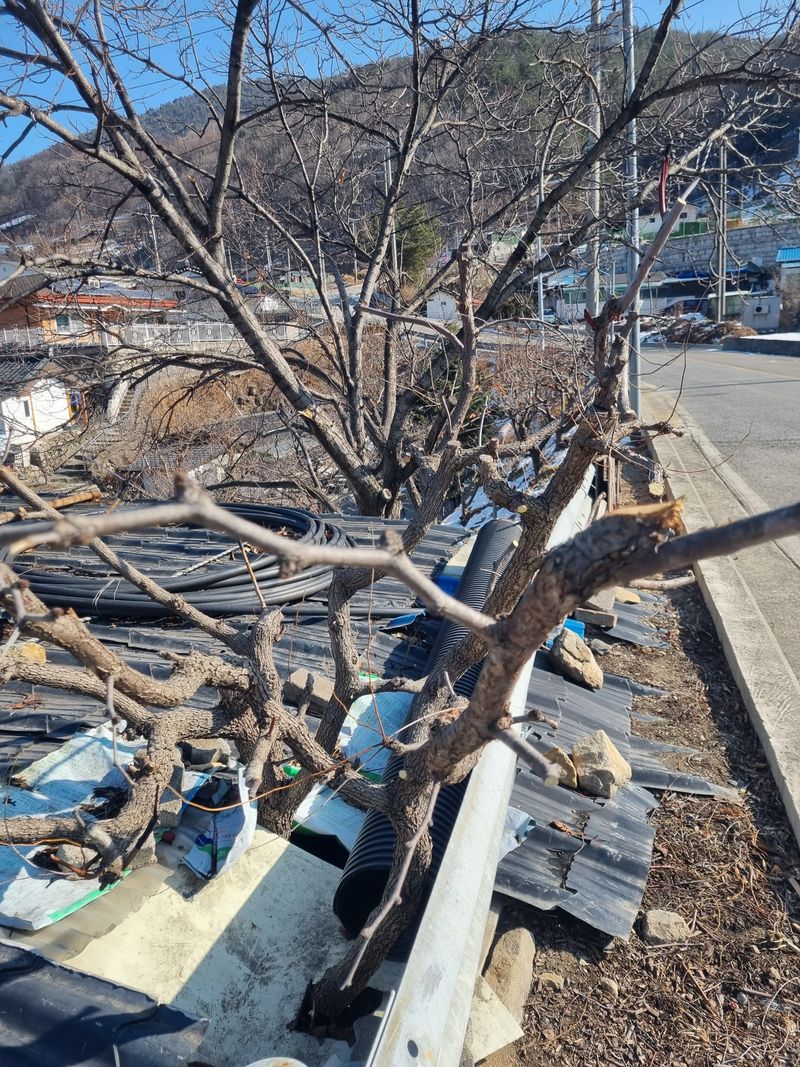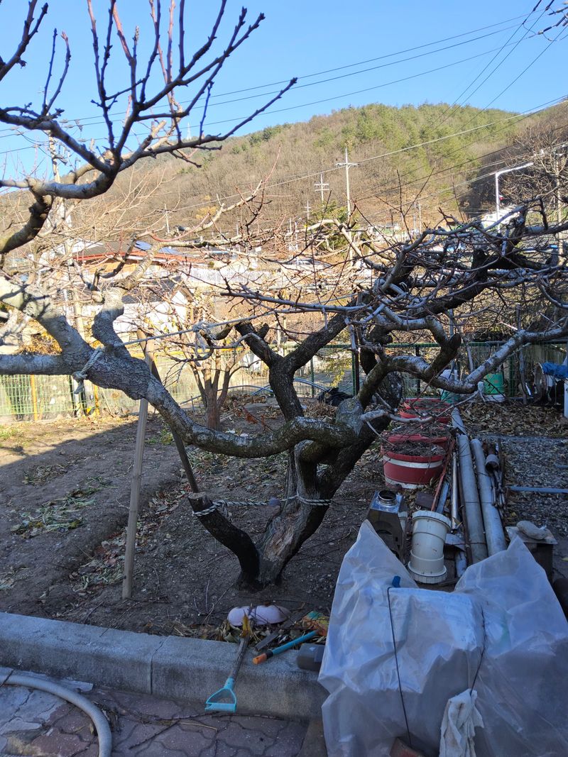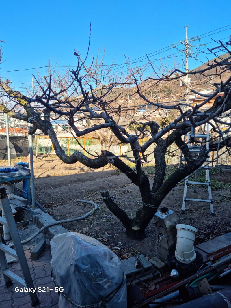 안녕하세요. 오늘은 저희건물뒤 자두나무1주가 가지치기및 겨울 방제함이 누락 되어 마저 가지치기와 첨부사진처럼 겨울 방제도 마무리 하였음니다. 한편 지난해 저희집에서부터 약 600m정도 배관작업 하여 뒷산 중턱 에 자연수인 우물에다 저희배관 입수파이프를 입점 하여 ...
