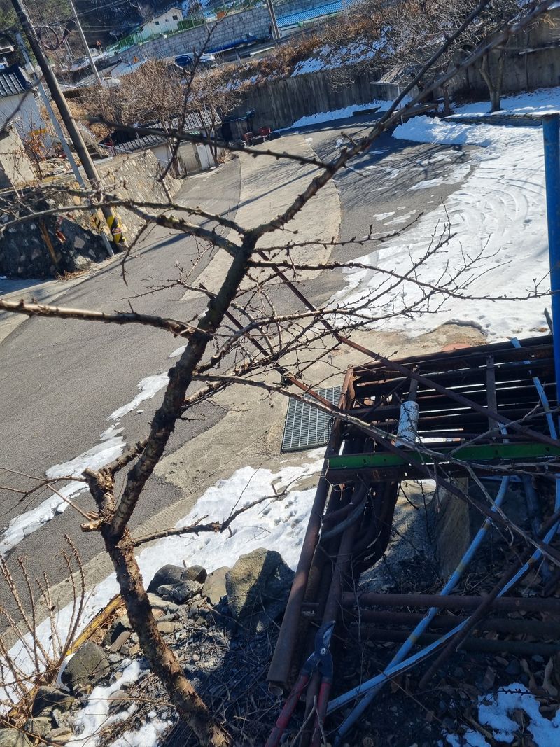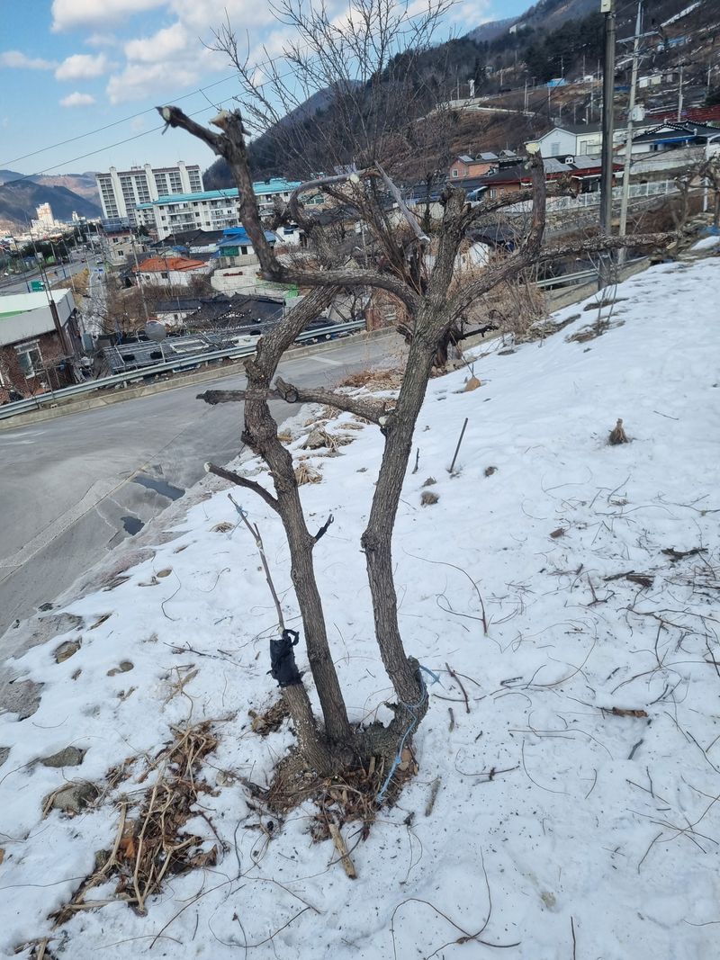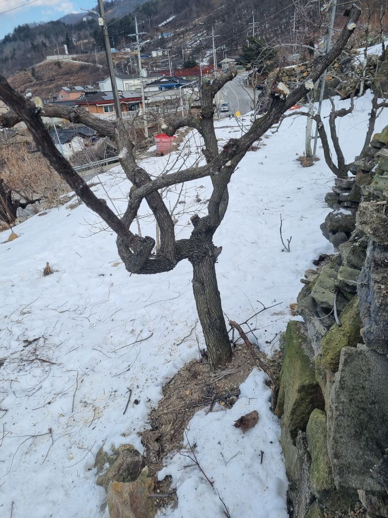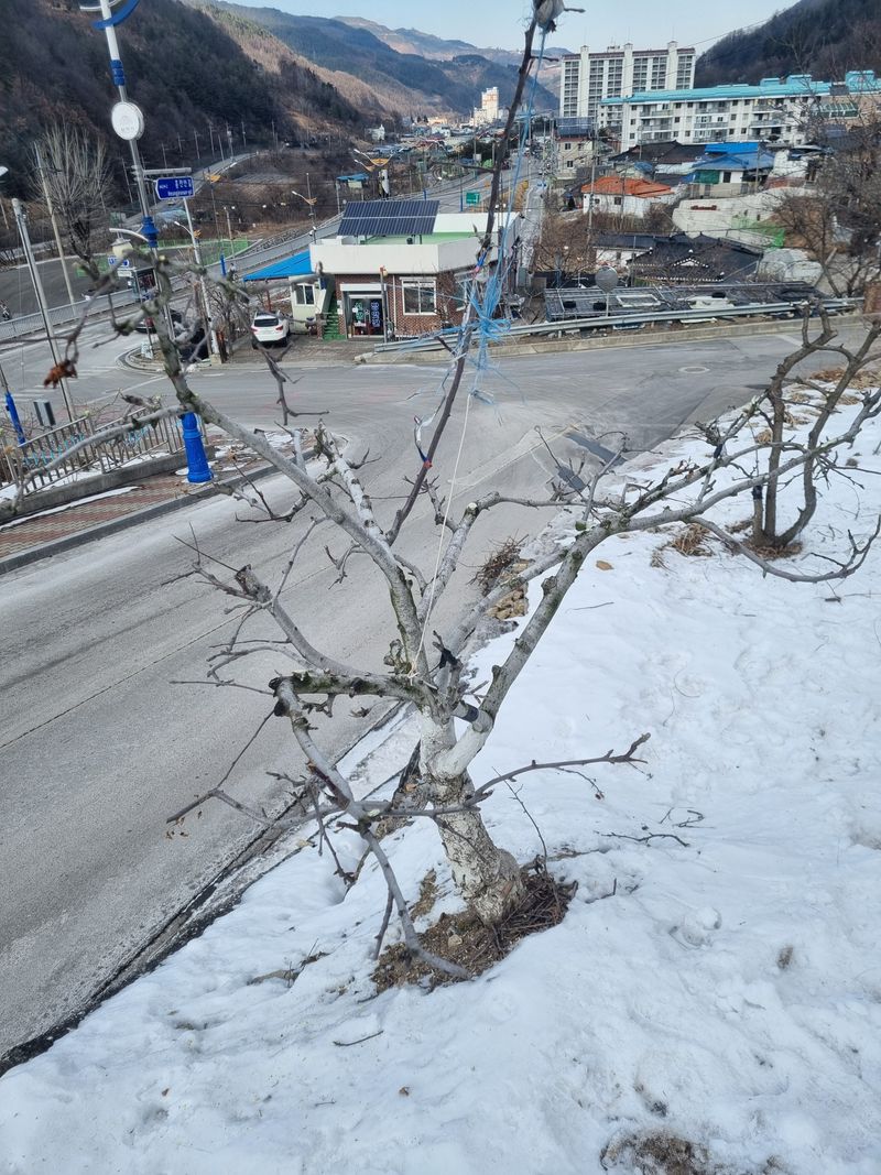 안녕하세요. 오늘은 저희집 앞도로건너지않고 가드레인 밖.식재된.배.감.자두.나무들의 높이낮추기.가지치기 하였음니다. 이곳 삼척하고도 도계 날씨 정말 겨울다운 닐씨임니다. 첨부영상처럼 좌측배나무죠. 사과스타크점보라는것으로 접목 성공되어서 이미2년동안 맛을보았음니다. ...