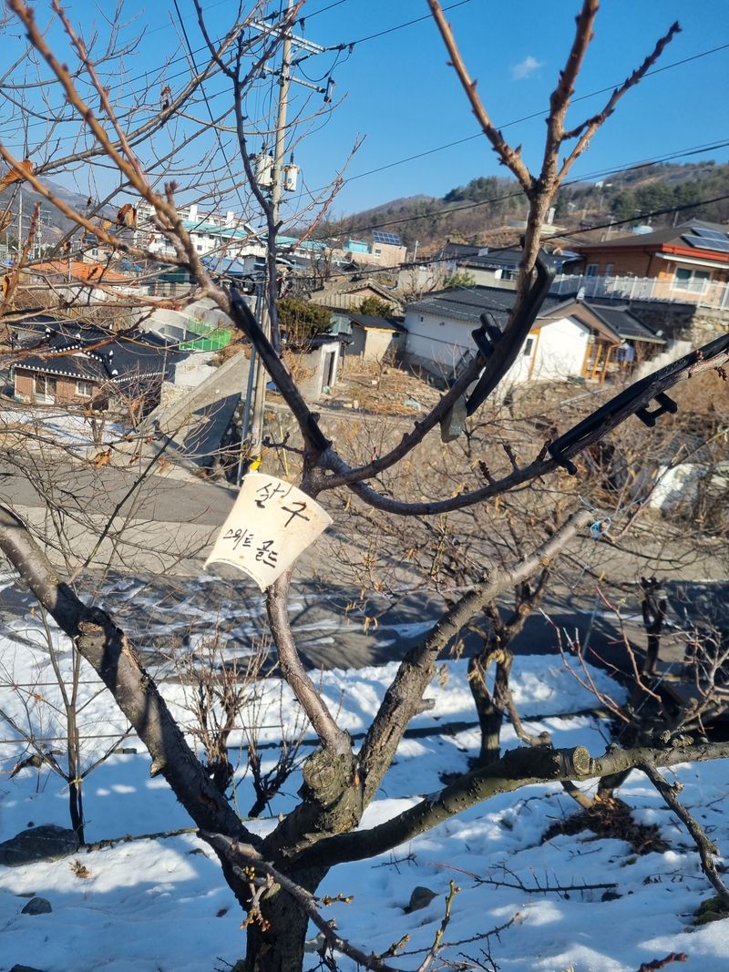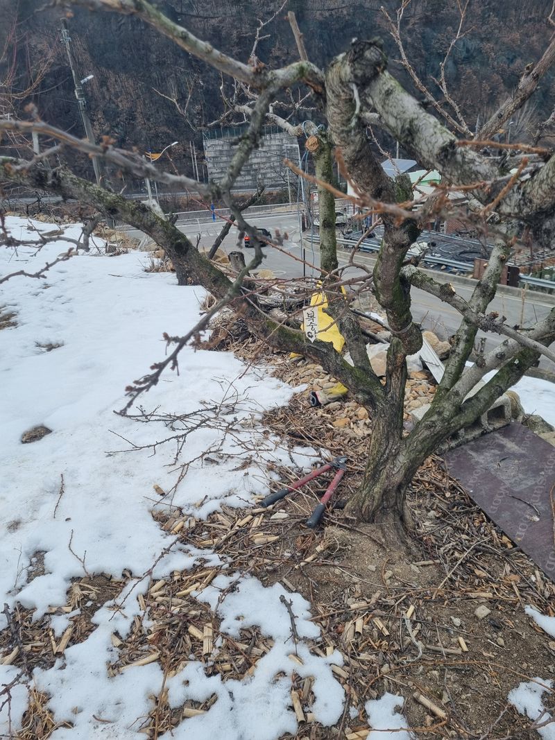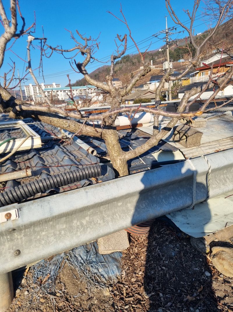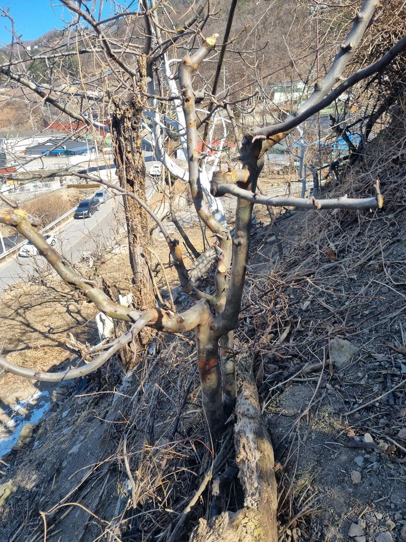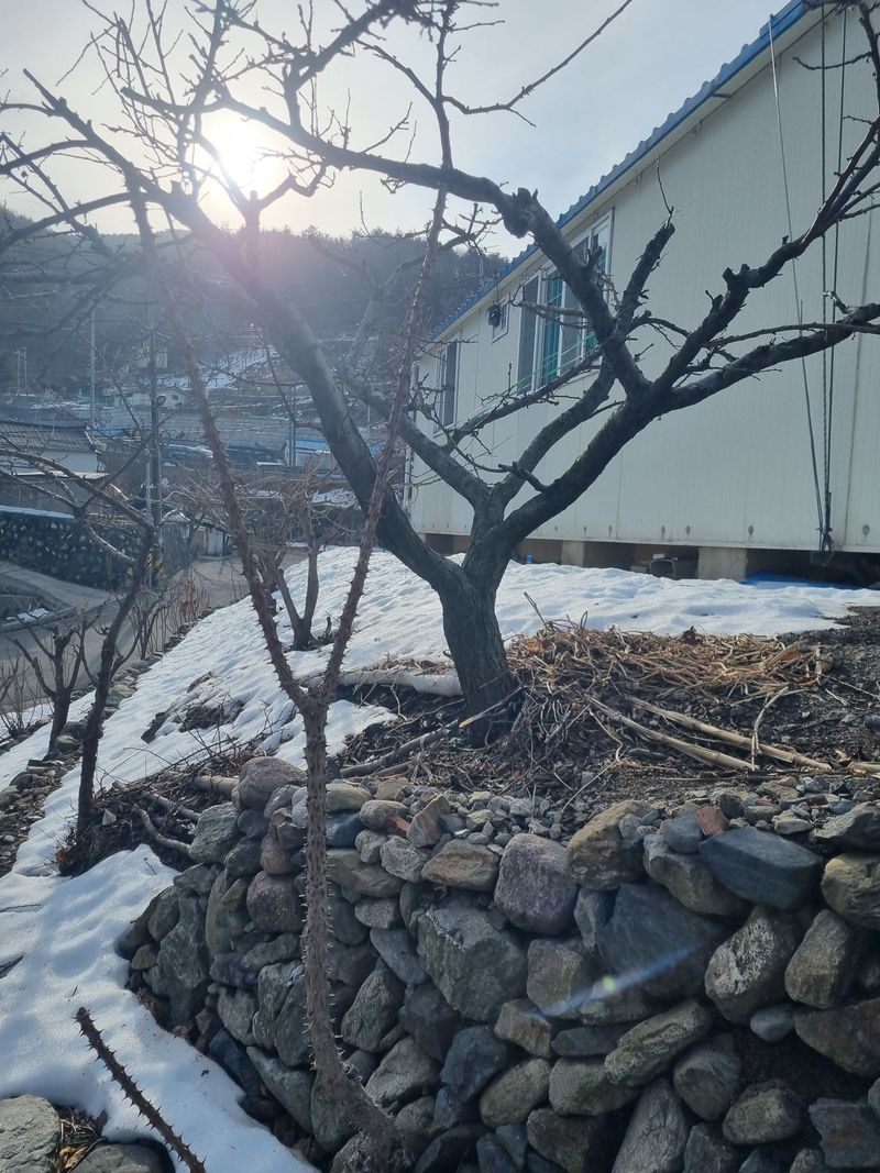 안녕하세요. 오늘은 저희집 앞도로건너지않고 가드레인 밖.식재된.배.감.자두.나무들의 높이낮추기.가지치기 하였음니다. 이곳 삼척하고도 도계 날씨 정말 겨울다운 닐씨임니다. 첨부영상처럼 좌측배나무죠. 사과스타크점보라는것으로 접목 성공되어서 이미2년동안 맛을보았음니다. ...