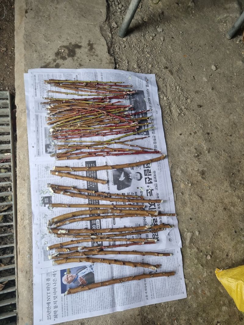 안녕하세요, 이곳도계에도 여전히 가뭄현상이있어서 가까운 야산에 나무들이 바짝 말라 감니다. 저희는 3일전 벗나무 접목하든 다음나무부터 이어서 오늘도 첨부영상처럼 4주 가존벗나무에 겹 벗꽃나무로 접목 하였어요 이제 총 40주에서 남은.접못한 벗나무가 5주 남았죠. ...
