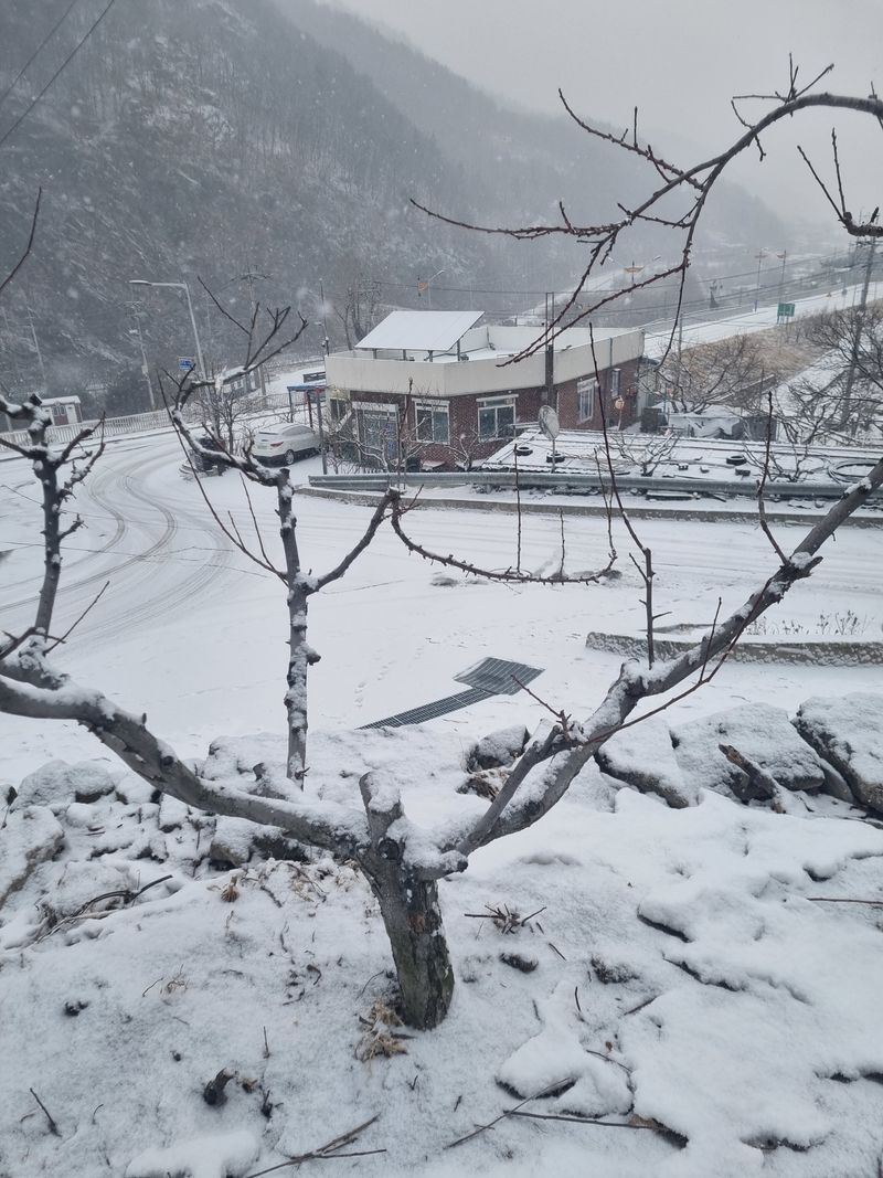 안녕하세요. 오늘도 예보는 눈으로 되었는데 저희가 살고있는이곳 도계지역엔 어제에이어서 하루 온 종일불필요한 날카로운 추위와 눈보라만이 전도계지역을 휩쓸고 지나가는또 몰상식한날씨람니다. 하지만 저희는 흔들림없이 계획대로 완숙,퇴비를 저희집앞 도로건너변 과수나무밭 가운데...