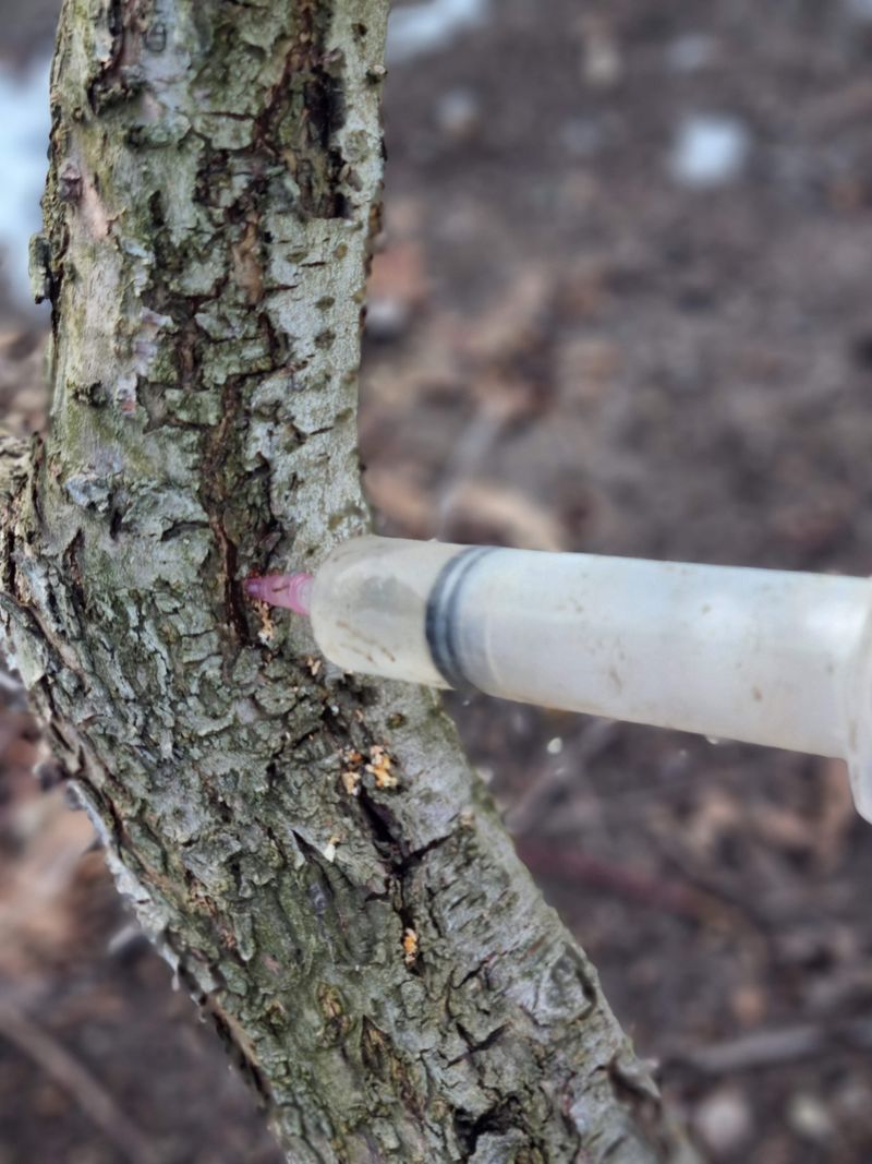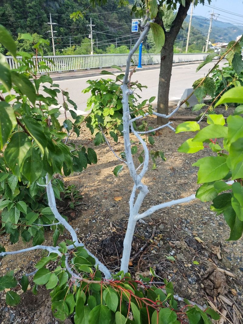 안녕하세요. 오늘은 야외일반 작업하기 좋은 날씨 같아요. 저희집앞 도로건너 언덕위 또더 언덕위 급경사지식재된 사과나무첨부 사진처럼 힌색나무죠. 이나무 3년전 좀벌레 침입되어서 당시 나무에 의심되는부위천공후 스미치온원액(농약.살충제) 주사하고 외부용 수성페인트와...