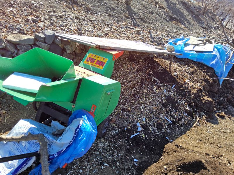 안녕하세요. 오늘은 저희집 도로건너 경사지중간 위치로나아가면서석축이 쌓여있는데 첨부사진처럼 그석축담장을 끼고서 저희가 퇴비저장소로 사용함니다. 그바로앞에다 파쇄기 설치되어있조 요즘과수나무 가지치기 고추대등 여러가지 부수물이 쌓여저 있어 오늘 청소겸 파쇄기로 정...