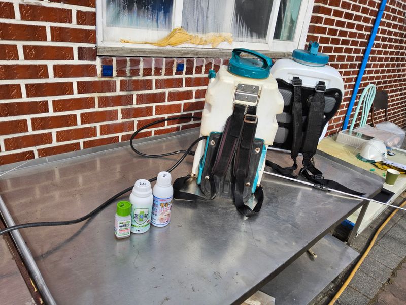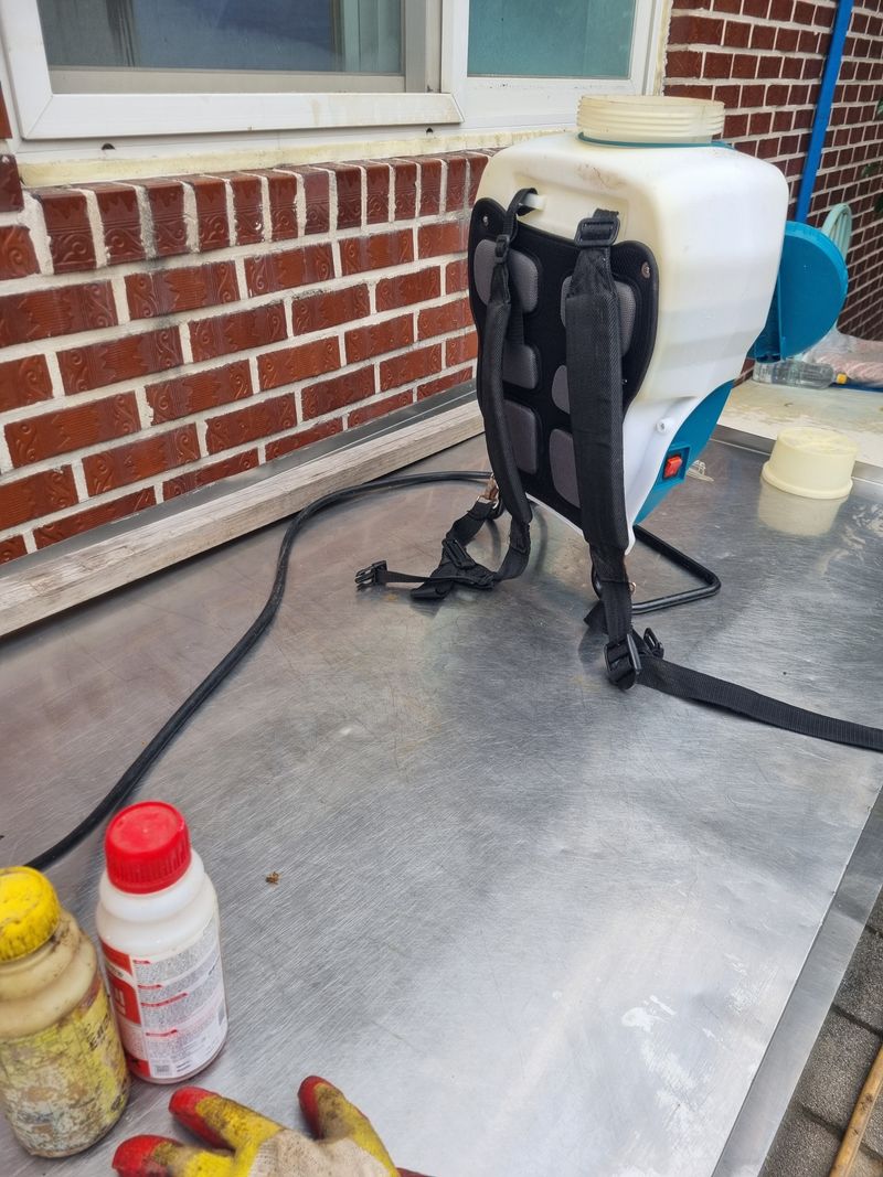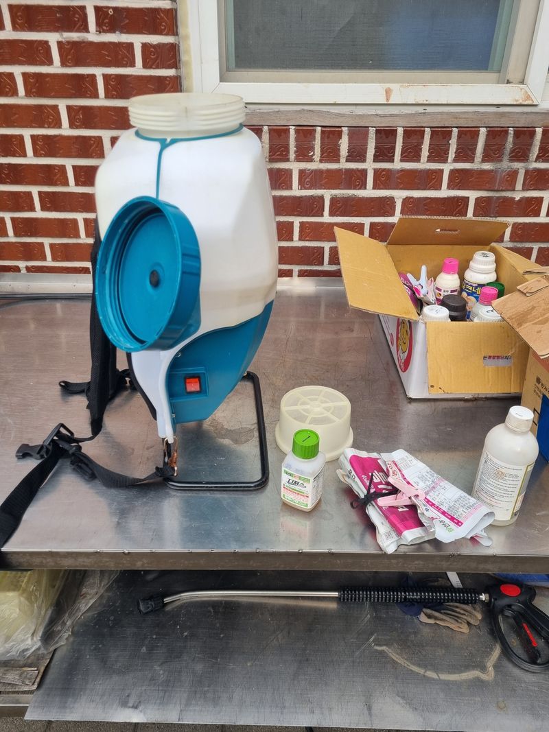 안녕하세요. 오늘은 저희집 바로앞 터밭에다 배추 무우 당근을 파종함에 첨부영상 처럼 살충제 살균 전착제 고루배합후 첨부사진처럼 처음 분무하였음니다. 또한저희 집 도로건너 언덕위 또더 언덕위 호두나무 3주모두 해당농약인 후론사이드 칼립소 한우물 전착제 이렇듯...