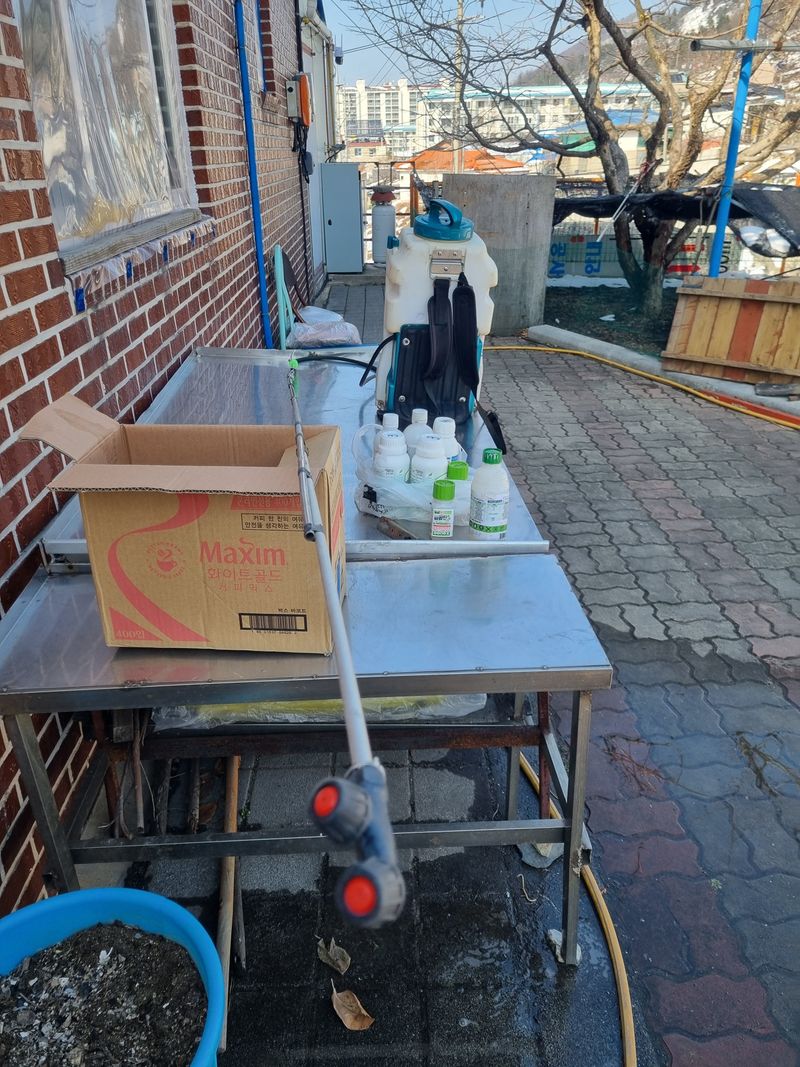 안녕하세요. 이곳삼척시 도계엔 이번 대설 내린후 사소한 일들만이 쌓여 어제까지 겨우 정리 마첬어요. 하지만 눈오기전 월동방역 하든작업을 오늘은 이어서 살충제 바람탄.동계유. 석회유황합제. 전착제. 두루 비준에 맞게 고루 배합후 저희곳은 아직도 힌눈이 쌓여서 작...