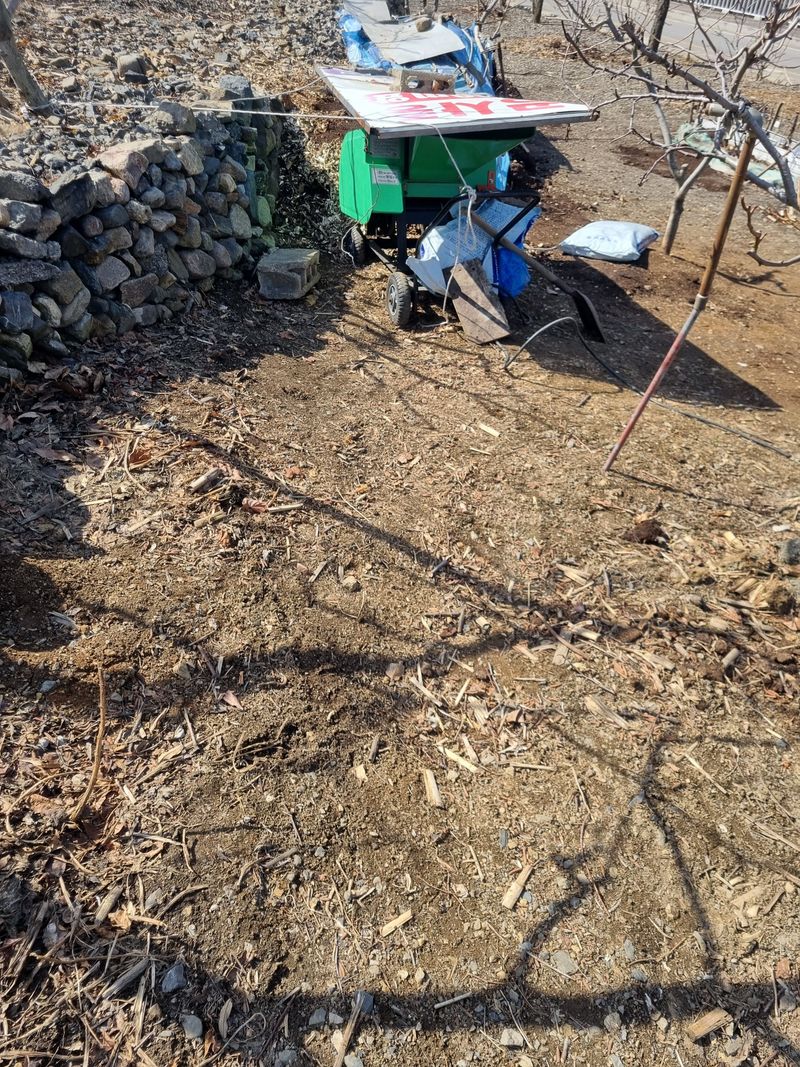 안녕하세요. 오늘은 저희집 바로앞 도로건너 석축담장을끼고서 퇴비저장소 설치 하고 그옆에다 파쇄기를 겹처설치하여 근간수시로 과수나무 가지치기 하면서 모았던 페나무들을 오늘 파새기를 가동하고 끝내고보니 과수밭주위. 그리고 저희 건물 주위도 함께 청소하듯 깨끗해 젔다...