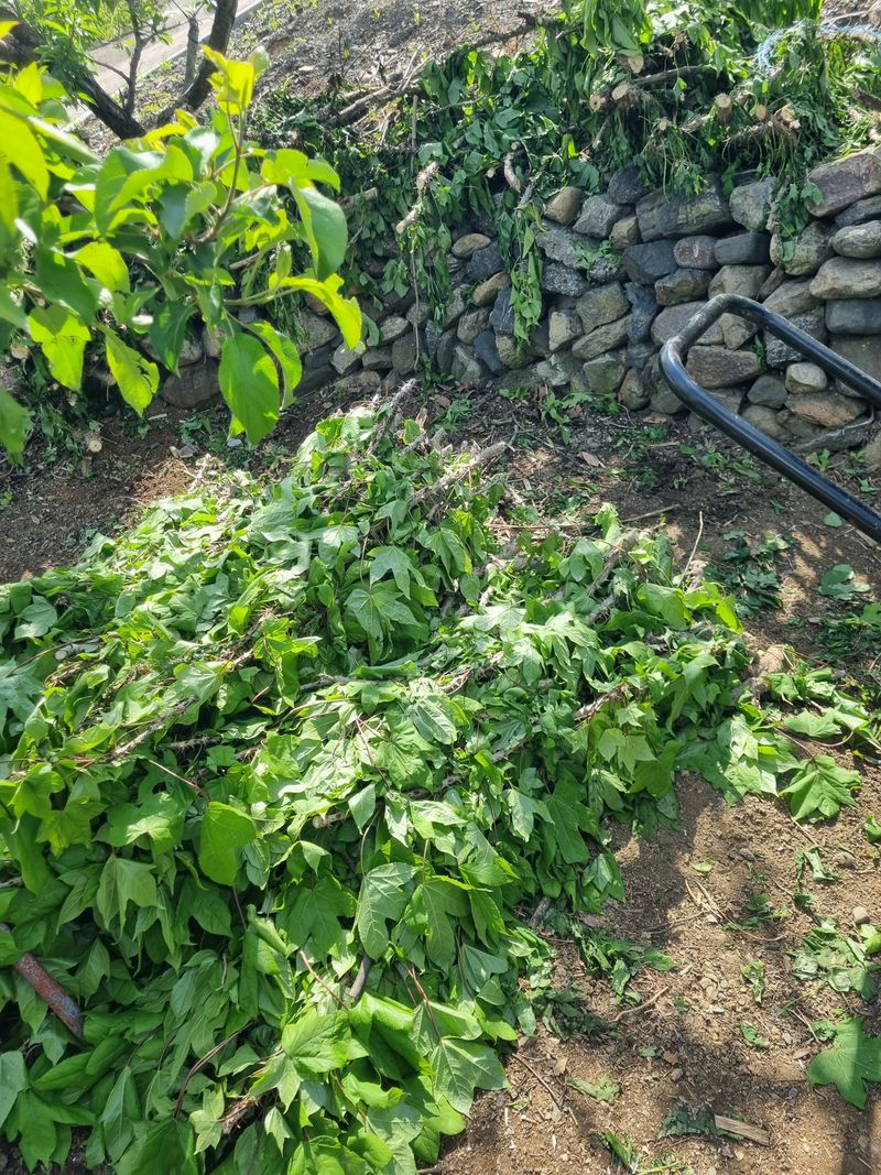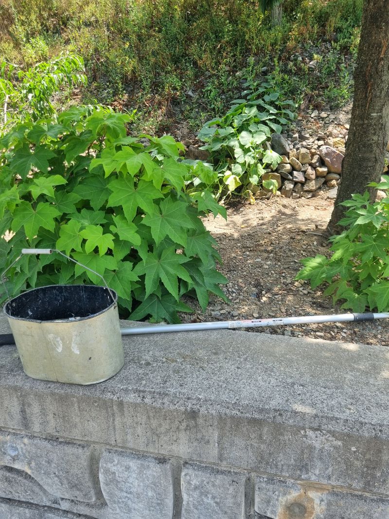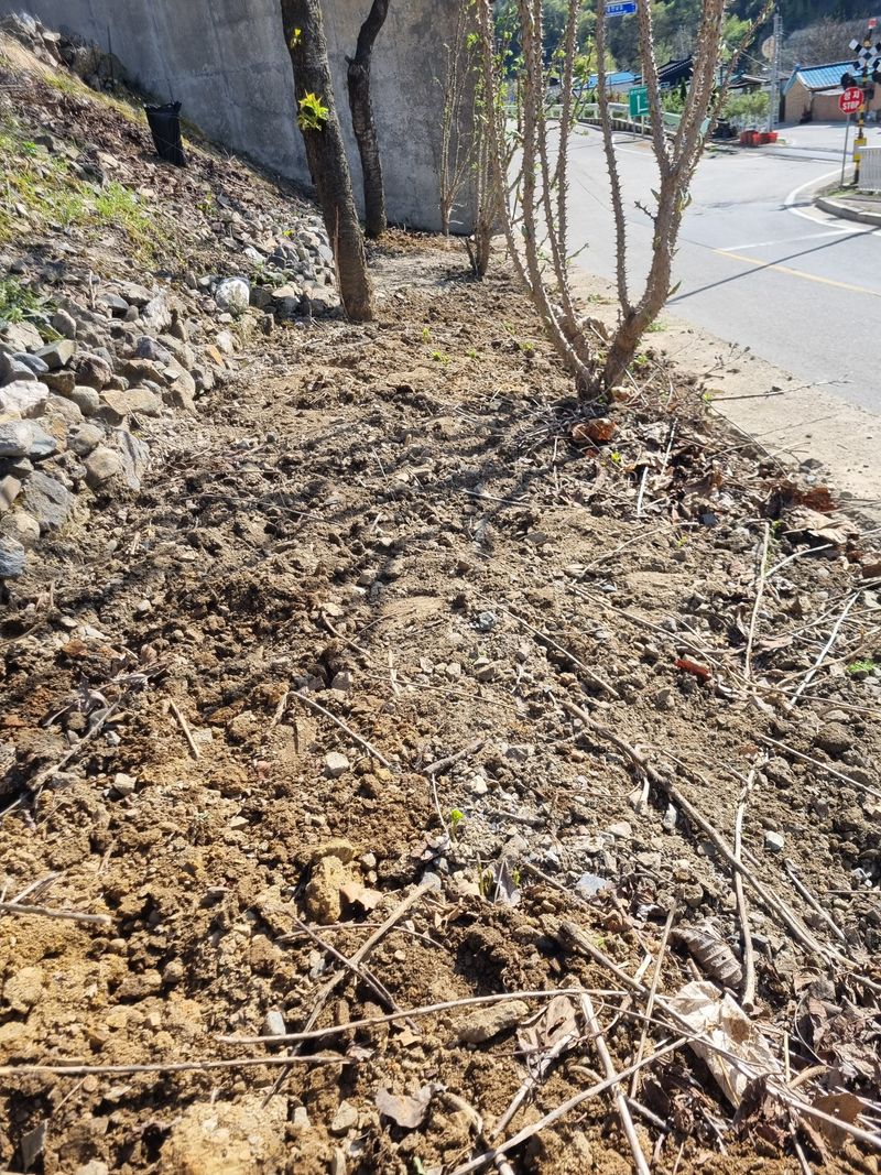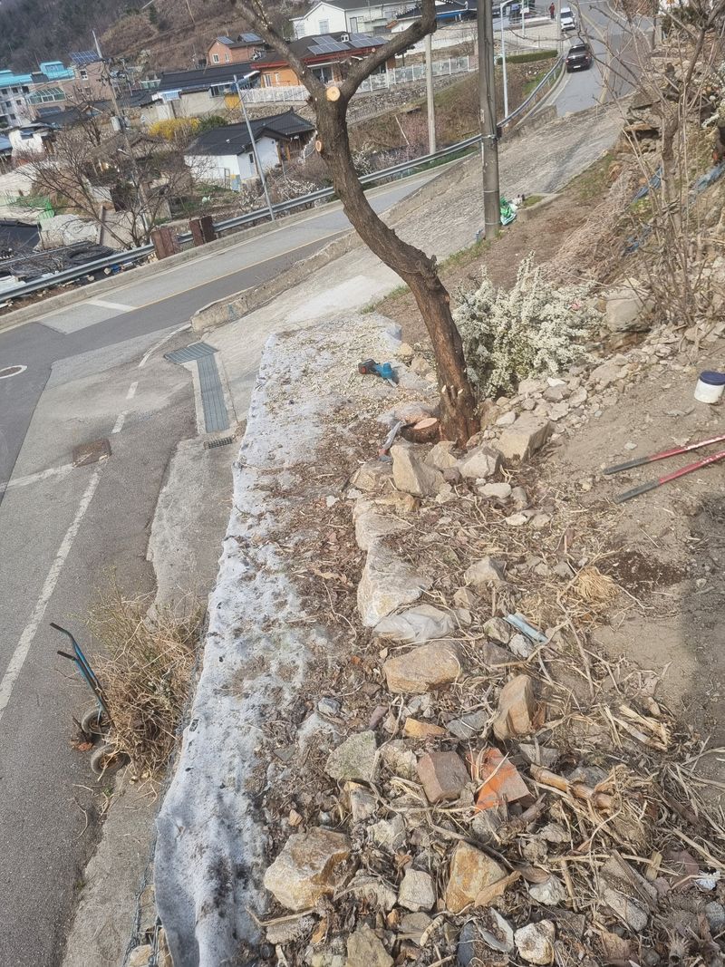 안녕하세요. 오늘은 저희집앞 도로건너 바로도로변에 식재된 가로수인 벗나무 사이 엄나무 언덕위로는 호두나무사이의 잡초들을 수작업으로 뿌리를뽑아 손수레다 실어서 저희 퇴비 저장소에다 버렸어요. 첨부영상과 함께 현장이 조금더 시원스레 보이시죠. 오후엔 예보상...