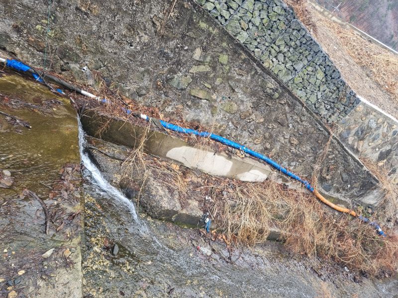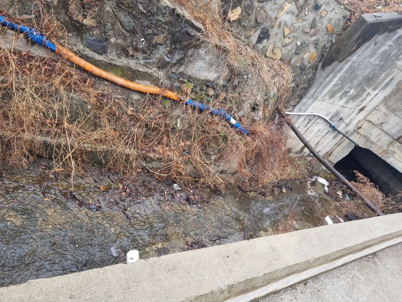 안녕하세요. 오늘은 우선 추운날씨 온다기에 저희 자연수 농수로 p25m파이프약 600 m배관후 금년도 사용했었음니다. 추위에 대한 중간 밸브및 에어 퇴수가랑 미 설치 로 오늘 첨부사진처럼 (1235번) 저희 하수관료 맨홀을이용하여서 내부에다 에어 퇴수가랑을 설치 ...