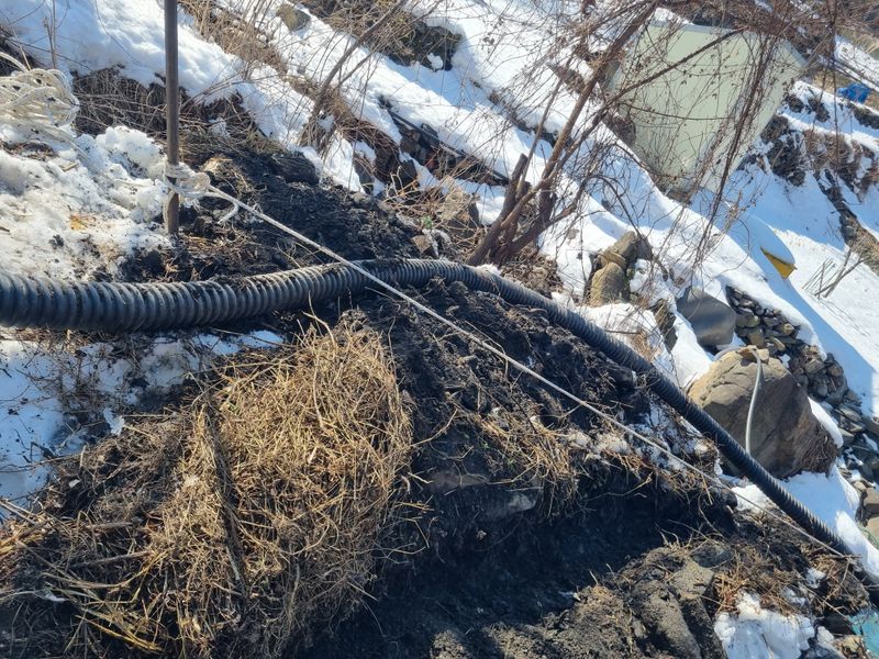 안녕하세요. 오늘은 이곳 삼척 하고도 도계 날씨 모처럼 일하기 좋은날씨라 함니다. 저희는 계획대로 저희집 옆 소 골짜기 우물에다 가뭄대비 자연수를 600m 배관하여 끌어오는데 성공하였으나 지난겨울 추위로 그만 단수되어 몇일간 재보수하여도 실패. 오늘다시배관이 의심되...