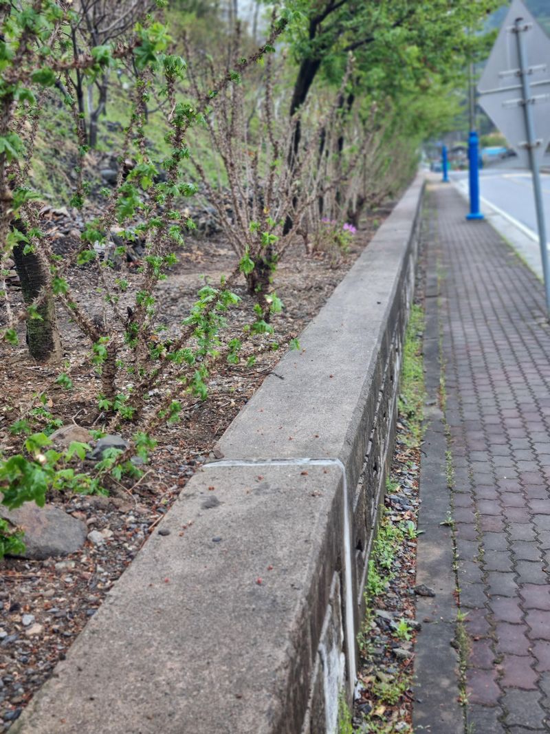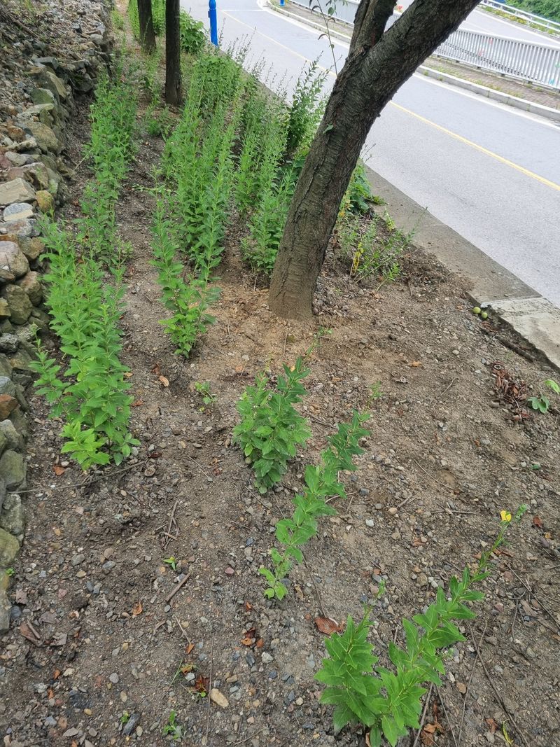 안녕하세요. 오늘은 저희집앞 도로건너 바로도로변에 도로삼거리 주변이기에 주위 청소겸 잡초도 함께 제거정리 하였음니다. 리고는 도로변 가로수인벗나무 사이로 엄나무 또 그사이로 우리나라 무궁화나무 첨부사진처럼 이렇게 나열되어 있어요. 첨부사진1번 5번6번 저희사다리...