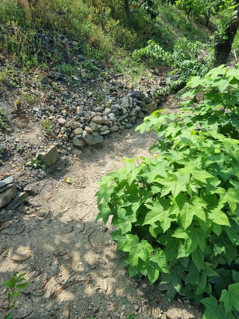 안녕하세요. 도계날씨 역시 비내리다 그치다 함니다. 오늘은 우선열매떨어저있는 호두 밤 주어서 모으는작업후 첨부사진처럼 저희과수나무밭가운데 대추나무 새끼친 움이터 새싹이 자라난 대추나무를 밭가운데 석축앞에다 3주 이식작업 하였음니다.