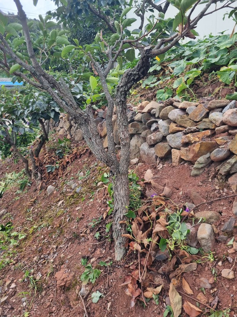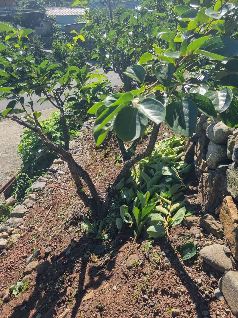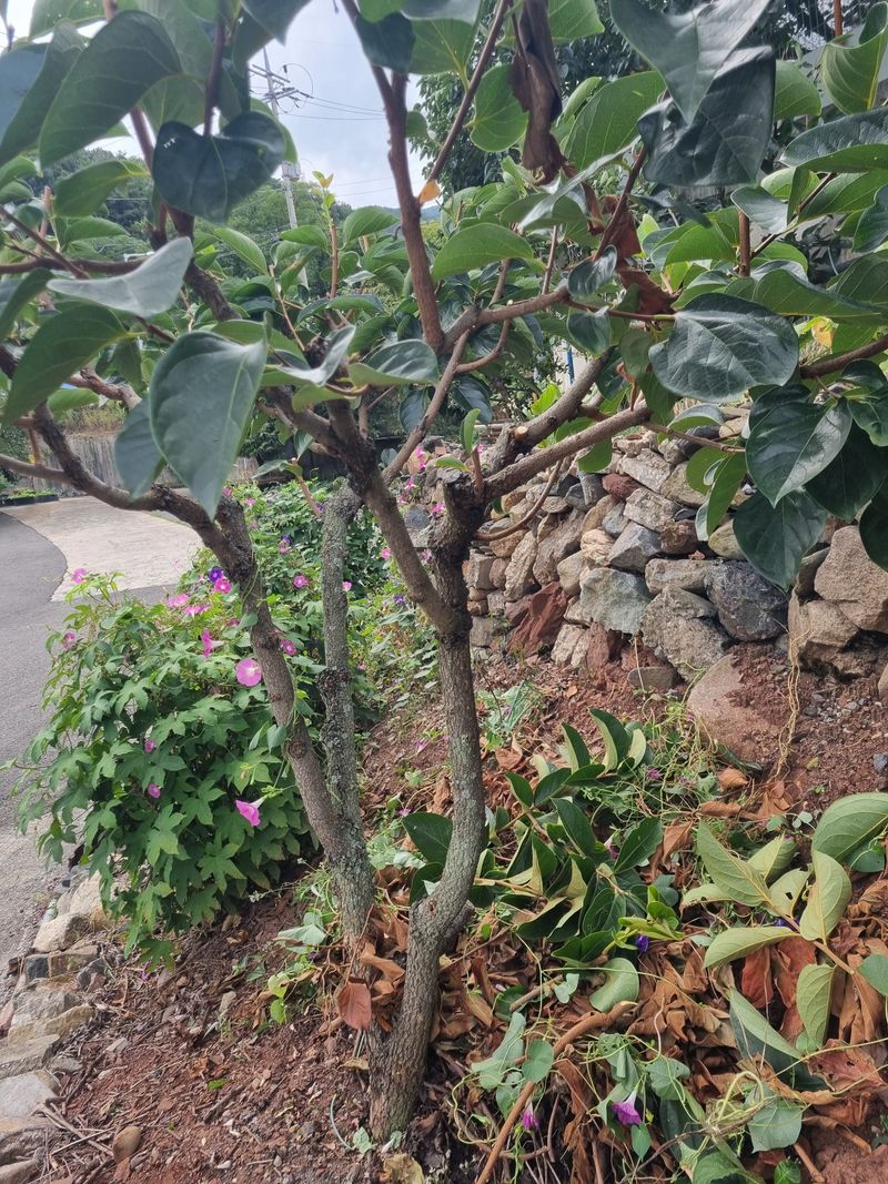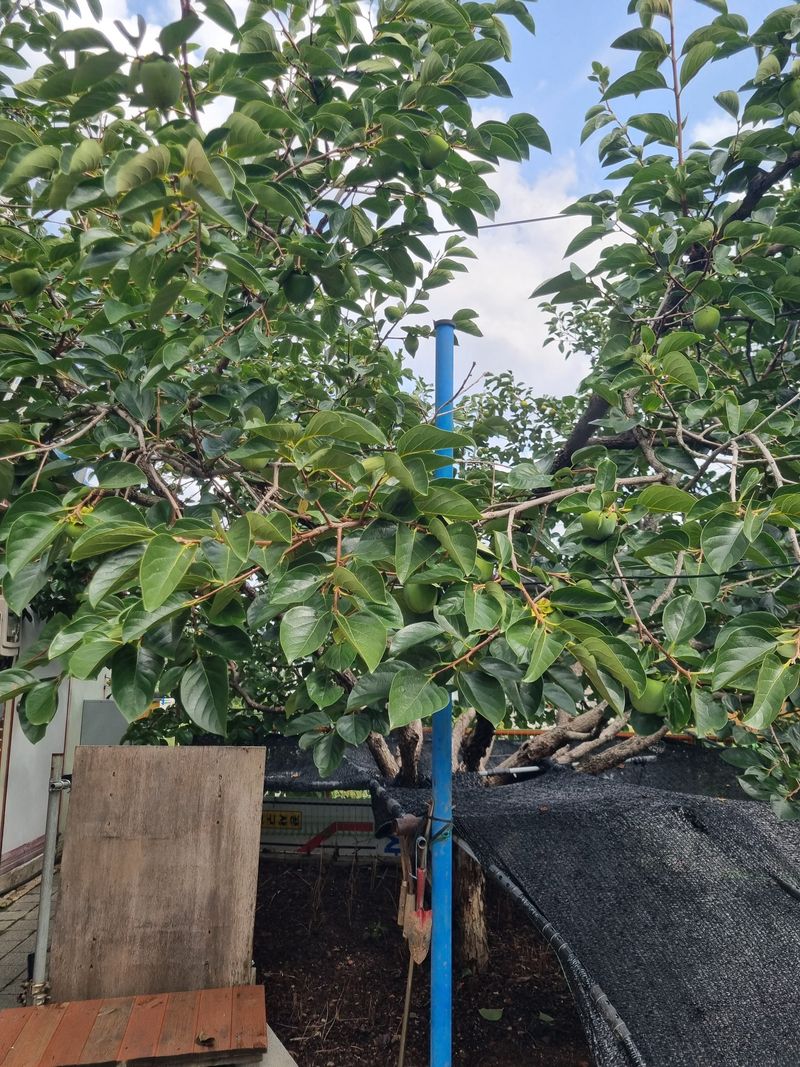 안녕하세요. 저희집 북쪽마당 터밭 경사지로 식재된 감나무 가지치기및 햇순 치기 를 2차로 첩부 사진 처럼 하였음니다.