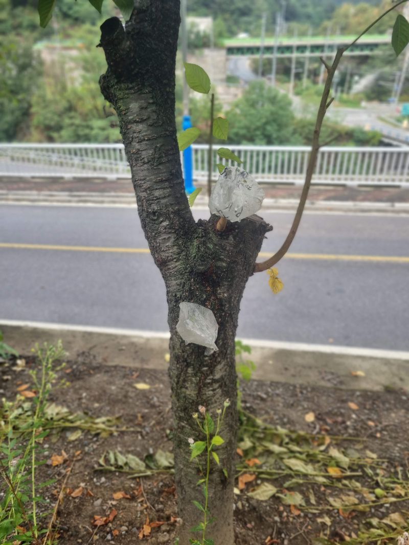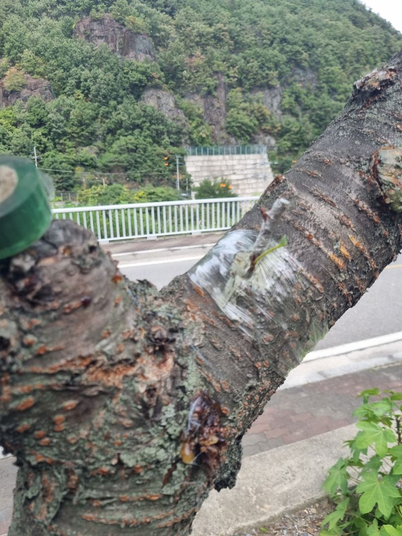 안녕하세요. 이곳도계에 비내림 예보나 비오다 그치다 반복 함니다. 도로건너 과수밭 삼거리쪽으로 가장자리에 사과(스타크점보.9년생)살구나무(6년생)각각 1주있는데 나무의가지 시작점에 진물이나오며 굳어져 아주 딱딱한 물체로 변하더니 이제는 나무 전체로 번저서. 어제 저녁...