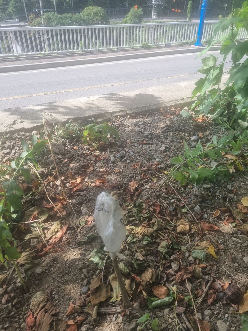 안녕하세요 오늘은 여기 도계날씨 모처럼 일하기 좋은날씨라 보겠음니다. 저희집 옆 도로건너 언덕위에 산아래 가장자리에 식재된 첨부사진처럼 포포나무주위가 온통 잡초와 함께 석겨 한참이나 포포 나무를 찾았는데 저희 낫으로 잡초를 수작업하여 저희퇴비 저장소로 옴기...