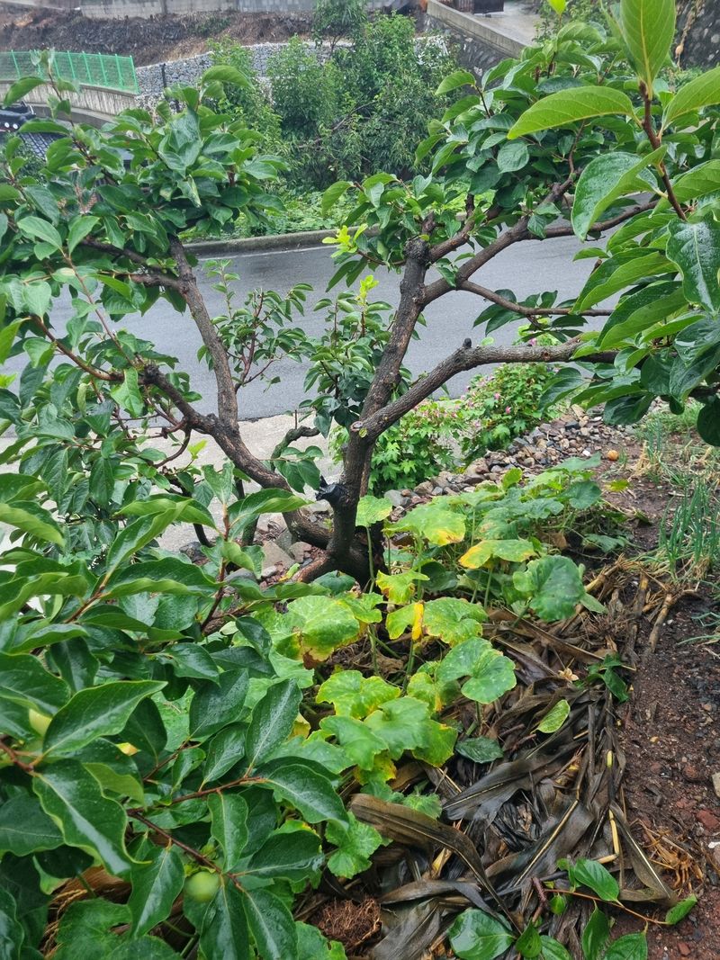 안녕하세요. 오늘은 이곳날씨 비 내림후이기에 그동안 시들고 말라서 병들고 고사 직전 온세상 식물들이 새삼스럽게 살아나는 현상이라 봄니다. 저희집앞 마당 앞 흑감나무와 도로건너 바로도로변에 석축을끼고 식재된 흑감나무 가지와 또 햇순중 정리하여야할것들. 유인 하여...