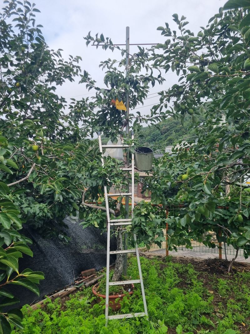 안녕하세요. 오늘은 비 이곳도계에도 비내려줌에 그동안 말라 사경에 고생하든 곡식 모든 식물들이되살아나 생기가 남에 기쁘다 봄니다. 아침일직 잠시 비 그침을이용하여서저희집 북쪽마당 가장자리에다 식재된감나무 햇순2차로 치기 또 가지치기도 함께 첨부사진처럼 안전 하게 ...