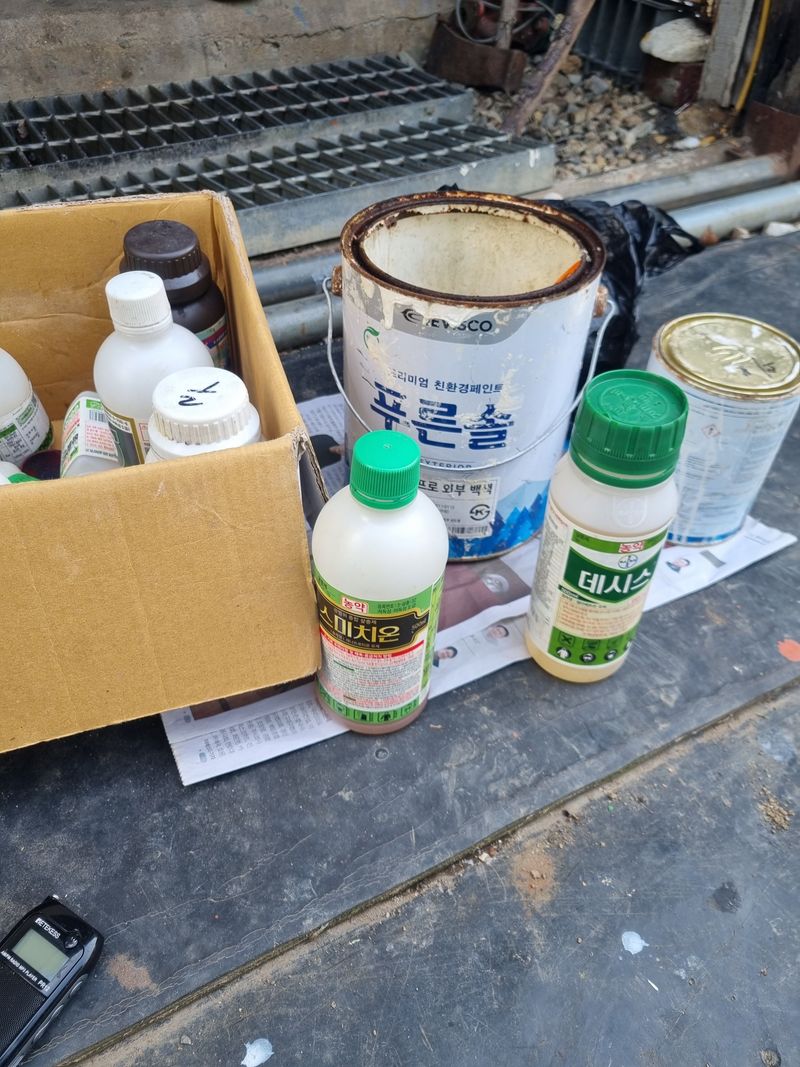 오늘은 춥다는날씨 아니였어요. 오후부터 비눈,예보있지만 저희나무에 농약이 씻껴나간다라고 각오하고서. 아침일직부터 저희집 도로건너 언덕위 첨부영상처럼 대추나무와 사과나무에다 월동 방제의 일환으로 (살충제보람탄.동계유.석회유황합제.전착제.)이렇듯4종 농약을 합께 ...