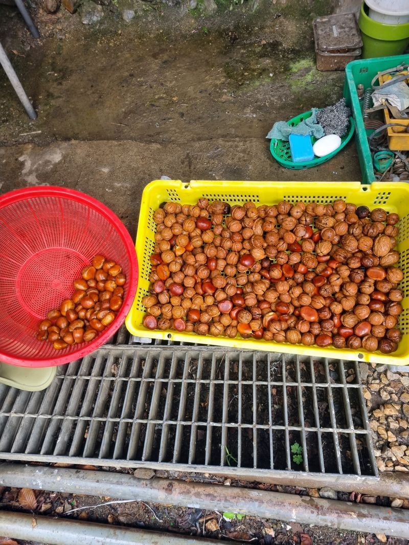 안녕하세요. 이곳도계날씨 오늘은 약한비. 현재 약한비 내리는중임니다. 저희 아침부터 대추 밤 호두 열매 수거작업을 하였어요. 비내리지만 제때수거치않으면 요즈음기온으로는 급히부패되기 때문에 서둘러서 씻은다음 첨부사진처럼 현재 건조 중임니다.