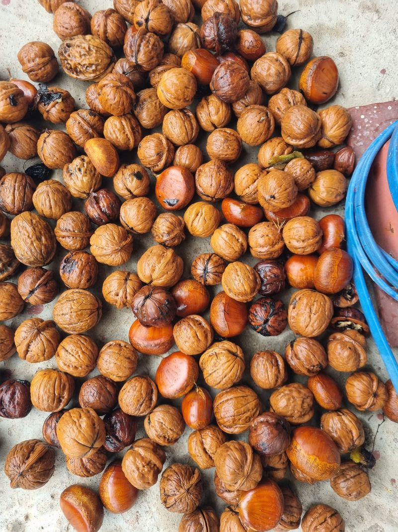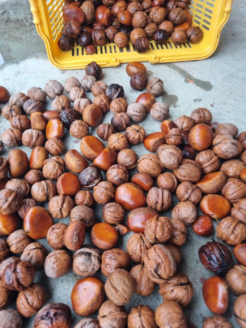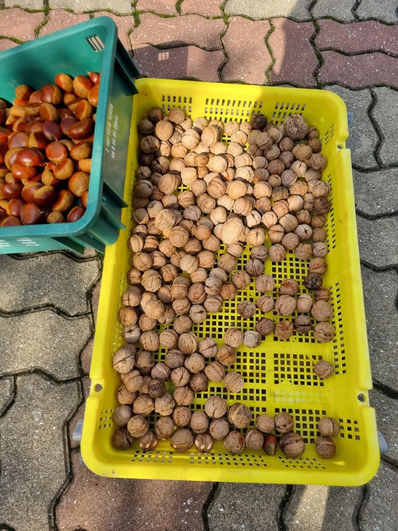 안녕하세요. 오늘은 이곳 도계 새벽부터 비내리다그치다. 오후 늦게서야 비 그침에 저희도 과수밭순회.마침 순회시 바구미를챙겨 다니면서 떨어저있는 호두 밤 첨부사진처럼 주어서 왔어요. 때로는 형체만생긴밤 호두 하지만 반대로 알이찬것도 있었으니 그것도 다행으로 여겨짐니다.
