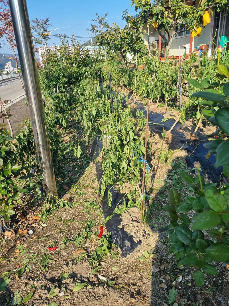 안녕하세요. 오늘은 저희집앞 도로변 고추밭에 고추나무에설치하였던 고추줄 고추대 흑비닐등 첨부사진처럼 모두 철거 함니다.