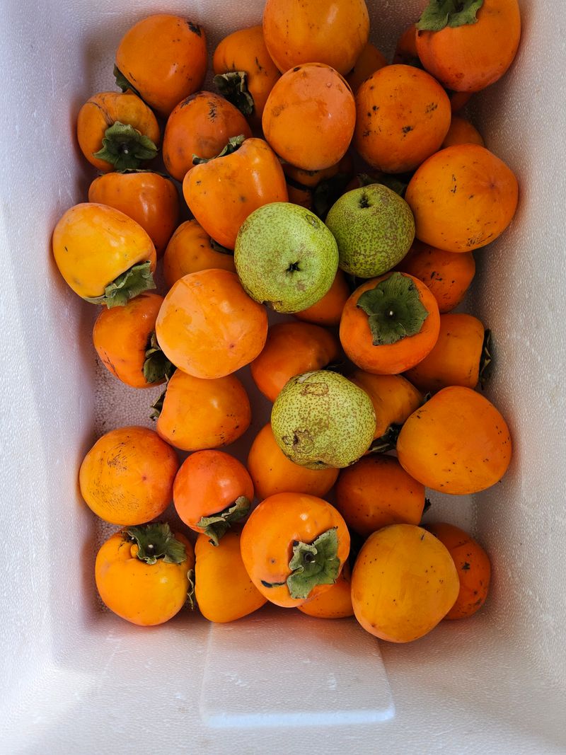 안녕하세요. 오늘도 이곳도계날씨 아주청명한 가을 날씨임니다. 저희도 가을이면 눈에 보이는것들 모두가 저희 일거리 같아요. 오늘도 저희집 주위로 감나무 대봉 야오끼 대왕감등 추위는 닥아온다하니 두루모아서 우선 감들이 익은것부터 첨부사진처럼 아이스박스로 2박스 따서...