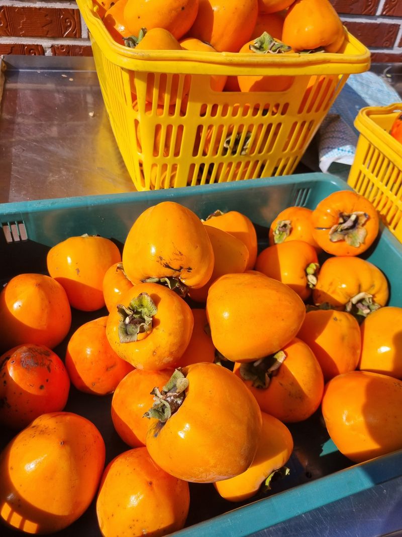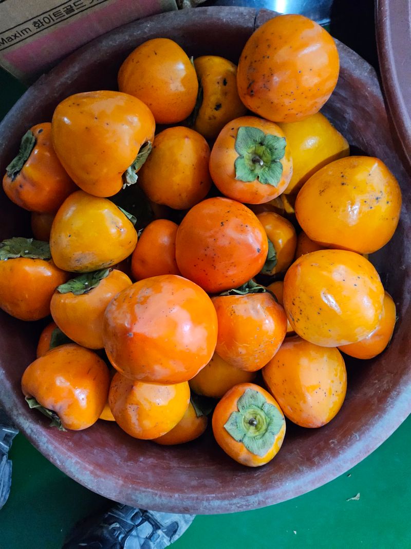 안녕하세요. 이곳도계 날씨 이른 아침부터 약한비 계속해서 내리고 있어요.한때잠시 비 그침시간을이용하여 이웃 지인들께서 저희 감을보고서아주많이 달리지도 않으며 감 자체가 크고 깨끗하다며 부탁하는분들이 있어 저희 첨부사진처럼 겸사 감의 물량도 파악하게 되겠음니다. ...