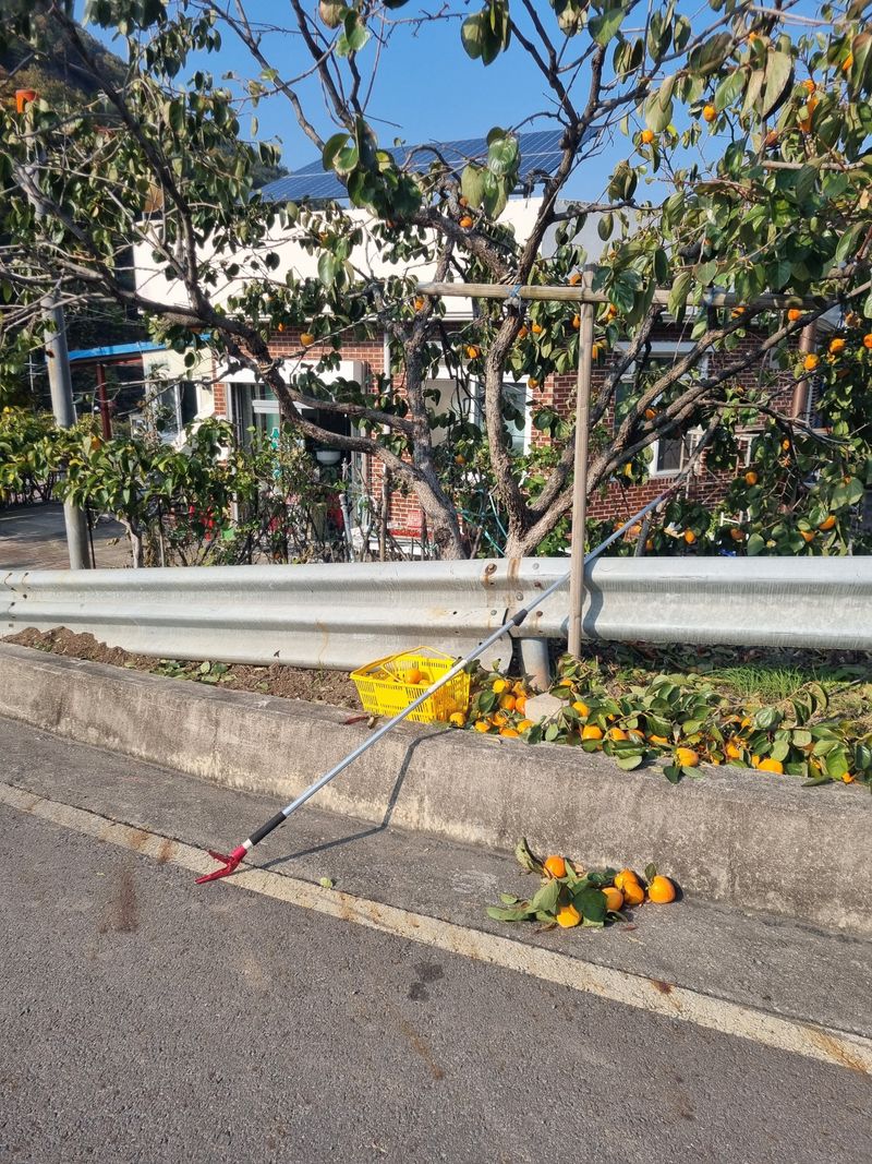 안녕하세요. 이곳날씨 정상적으로 가을임니다. 어제 저희마늘 파종작업 끝내고 오늘은 바로집앞 도로변대봉감나무에 감따기작업임니다. 첨부사진처럼 1번2번 감나무가지사이로 자세히 보시면 저희 집이 보이시죠. 감따기 하는 장대로감을따 내려놓은 상태가 첨부사진3번 ...