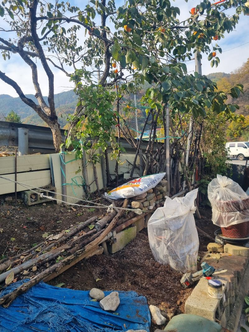 안녕하세요. 오늘은 아침일직 이곳도계 약한비내리고 있었음니다. 저희도일직 부터 어차피 조금이라도 기온내려갈것으로보고 언덕위 남겨둔 대봉감 1주(사진3번)를 마주 따 보았어요. 그리고(사진2번)첨부사진처럼 저희집앞 석축을끼고 설치되어 있는 저희퇴비저장소 에 ...