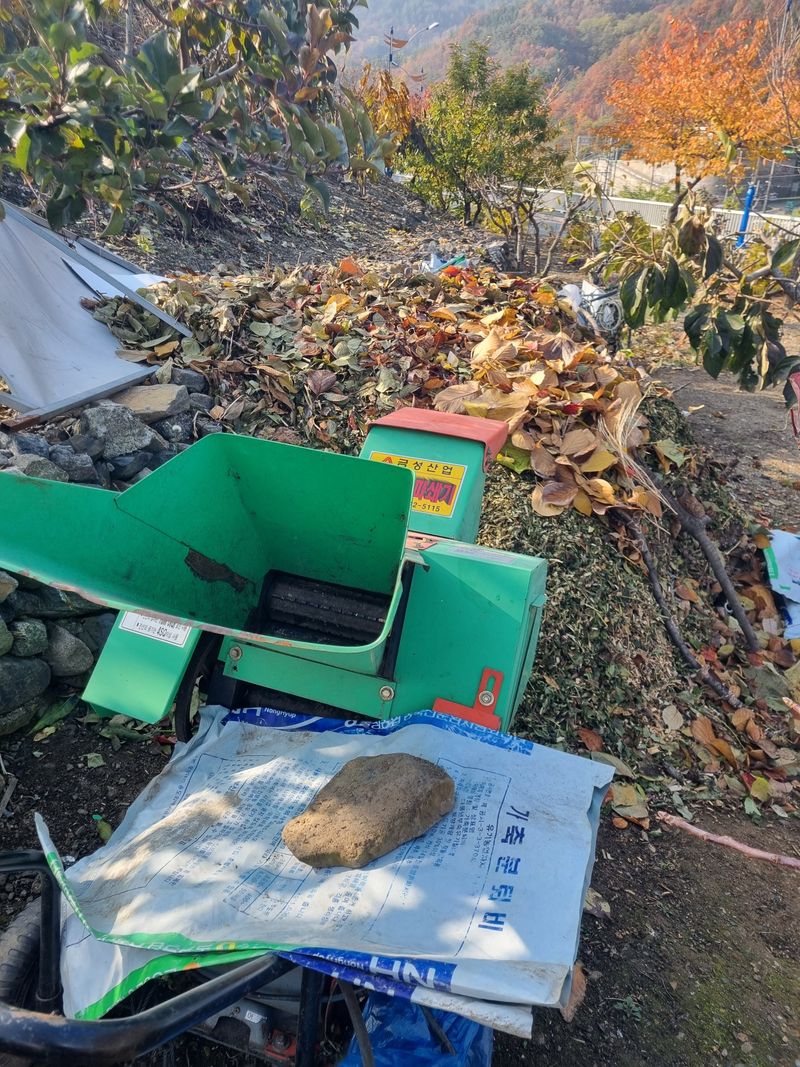 안녕하세요. 가을이 깊어지는것 같아요. 저희 오늘은 지난날 사과 복숭아 대추나무 가지치기한 페나무.오늘 파쇄기를 이용 첨부사진처럼 파쇄작업 하였음니다. 한편 어제에이어서 감 밤나무에 깍지벌레 왕진드기 살충제로 분무작업중 분사대 고장으로 작업 중단 하였어요. 오늘 늦...