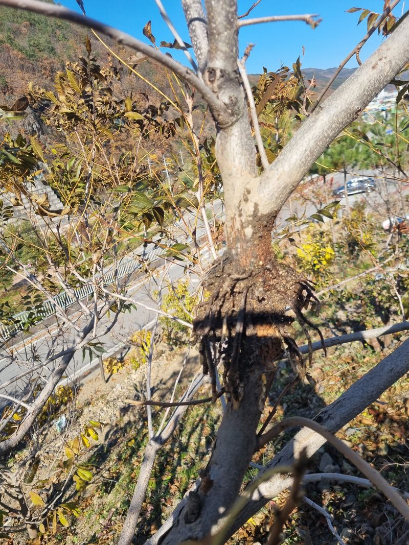 안녕하세요. 여기 도계.전형적인 아주좋은 가을날씨 같아요. 저희는 집앞 도로건너 언덕위 또더 언덕위 식재된호두나무가언덕위 경사지 중간에 자라고있죠. 그런데 그위치에 옆으로나가면서 실 크랙이 형성되며서 나무가 아래쪽으로 약간 기울기시작 하기에 오늘 저희가 첨부영상처럼 ...