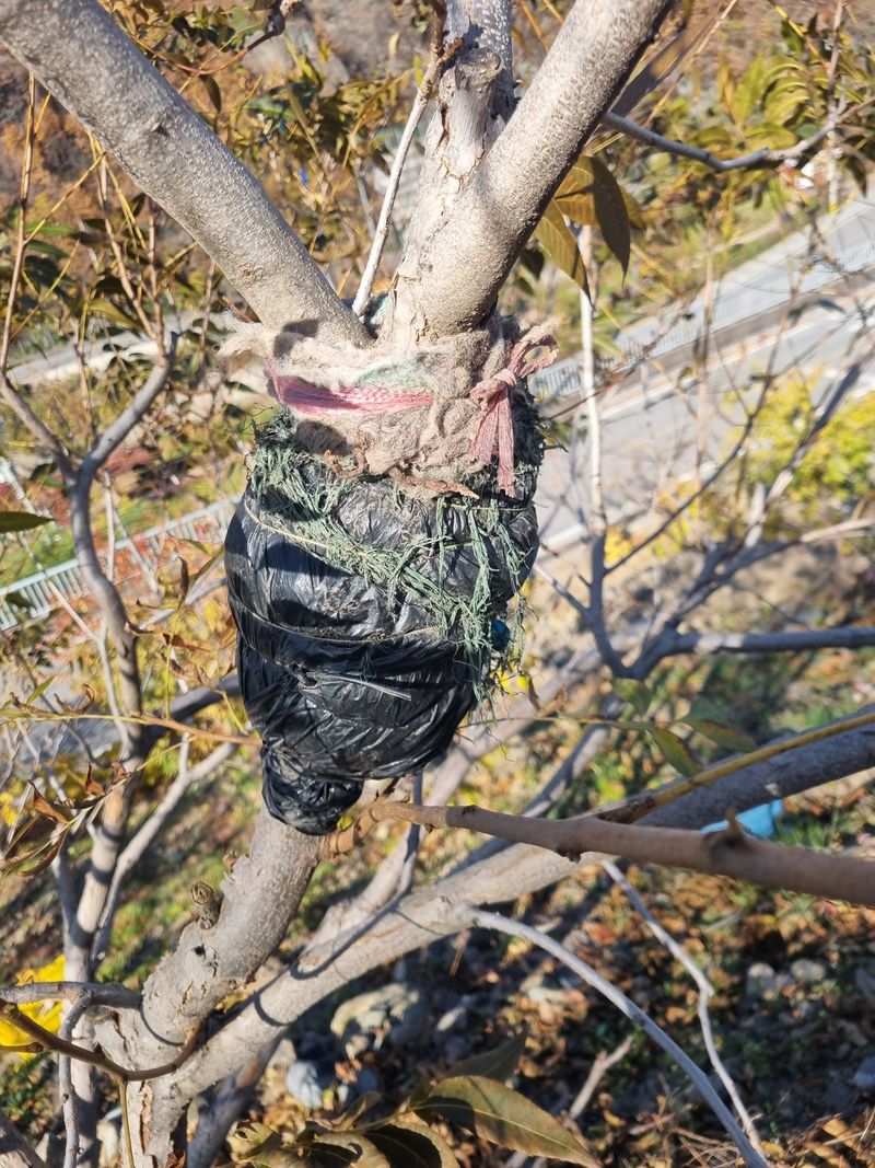 안녕하세요. 오늘도 아주 쌀쌀한 강추위 겨울맛이나는 날이라 보임니다. 첨부영상처럼 이나무는 자두나무인데 복숭아.살구.접목성공되어 금년부터 열매 달릴 것임니다. 3종 과수나무로 되었지만. 아직도 접목 위치에다 명찰부착이 안된 상태임니다. 다만 아직도 어...