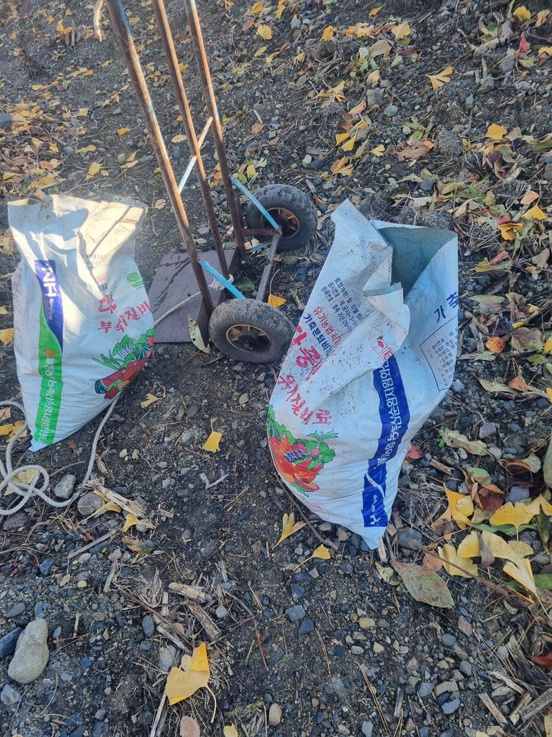 안녕하세요. 오늘도 저희집앞 도로건너 가드레인옆으로 과수나무에다 어제에 이어서 완숙 퇴비 주는 작업임니다. 저희 보관중 퇴비는 떨어저 가는데 때마침 먼저 퇴비 얻어 가저오든집에서 또 6포 저희가 가서 가저와 오늘 작업중인바 첨부사진처럼 여기 가드레인 옆으로는 이제 ...