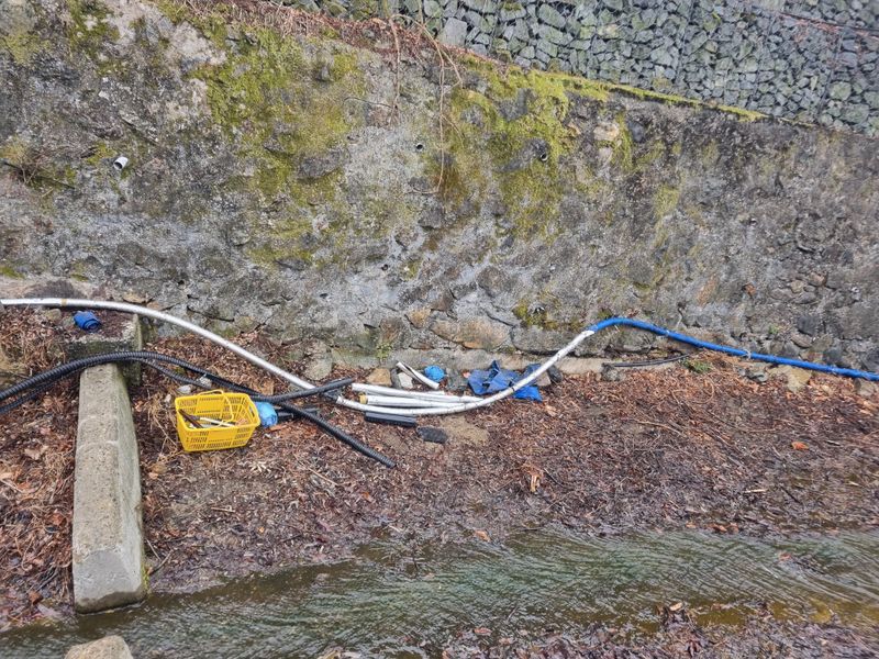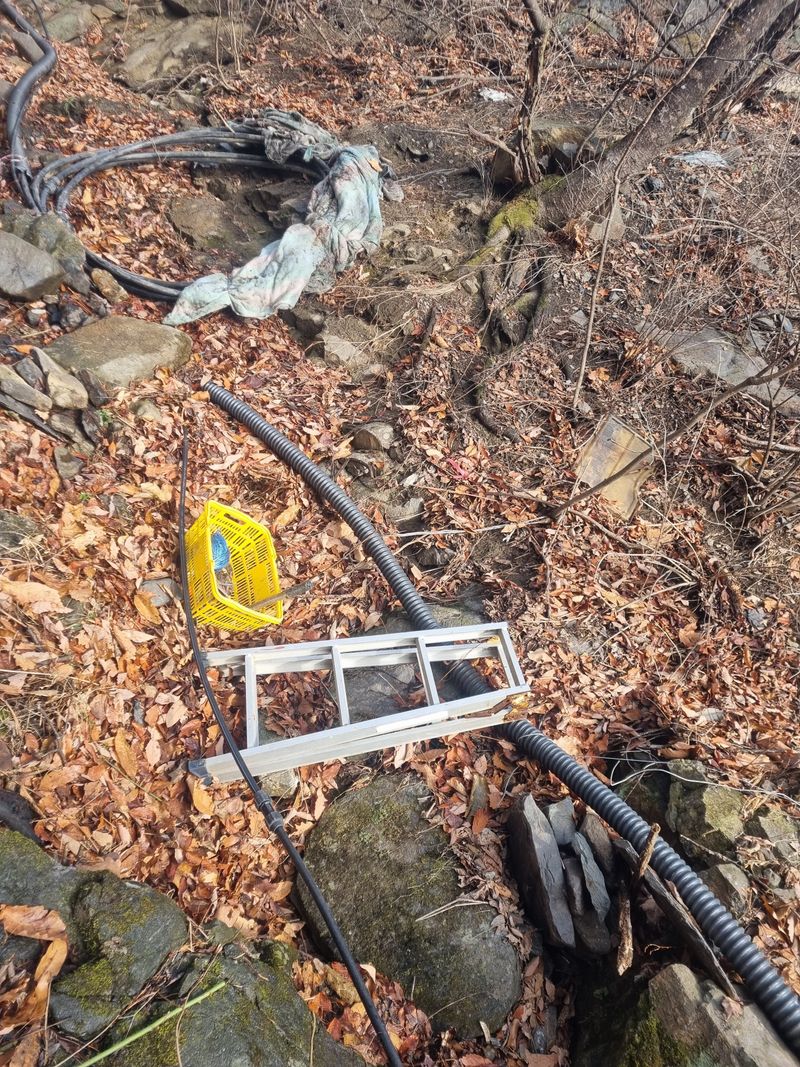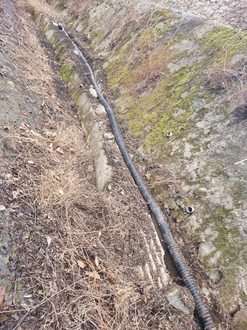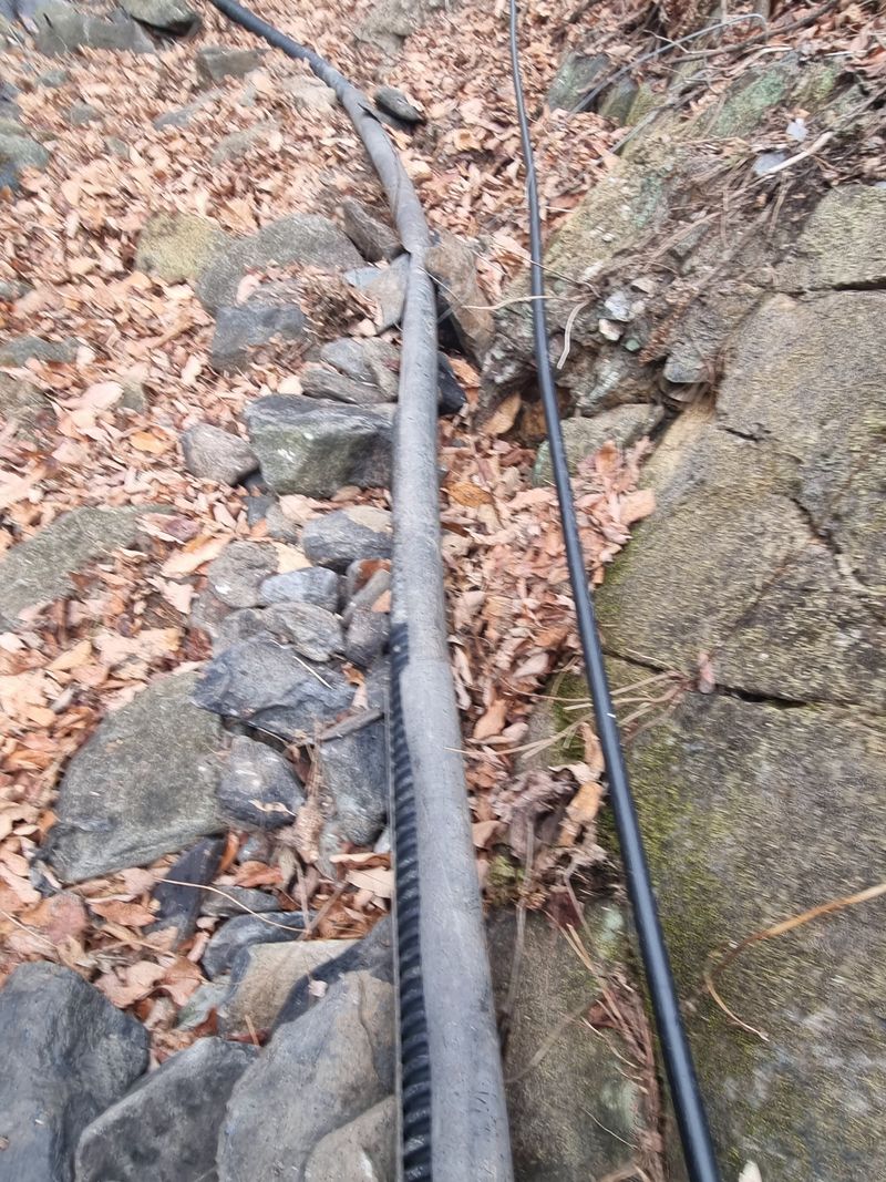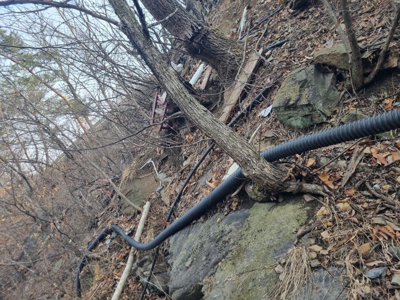 안녕하세요. 여기삼척도계 종일 눈내리다 비내리다 햇빗 비춰주다 반복 날씨임니다. 저희 잠시동안 눈비 멈춘 시간을이용하여 첨부사진처럼 어제에이어서 농수로 배관작업이안전하게된 위치엔 보온카바와 보온테이프로 마감철리후 저희집 에서 약 500m 떨어진위치에 서 또 배관...