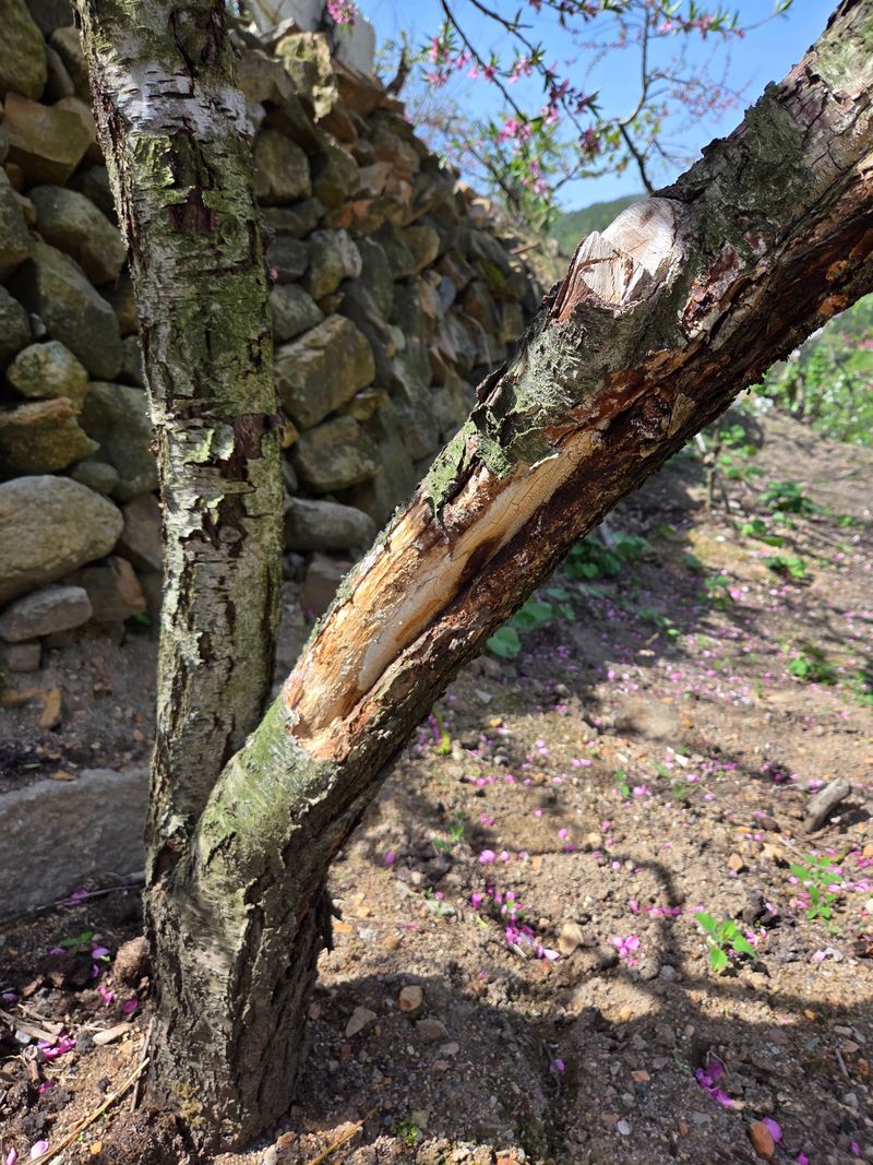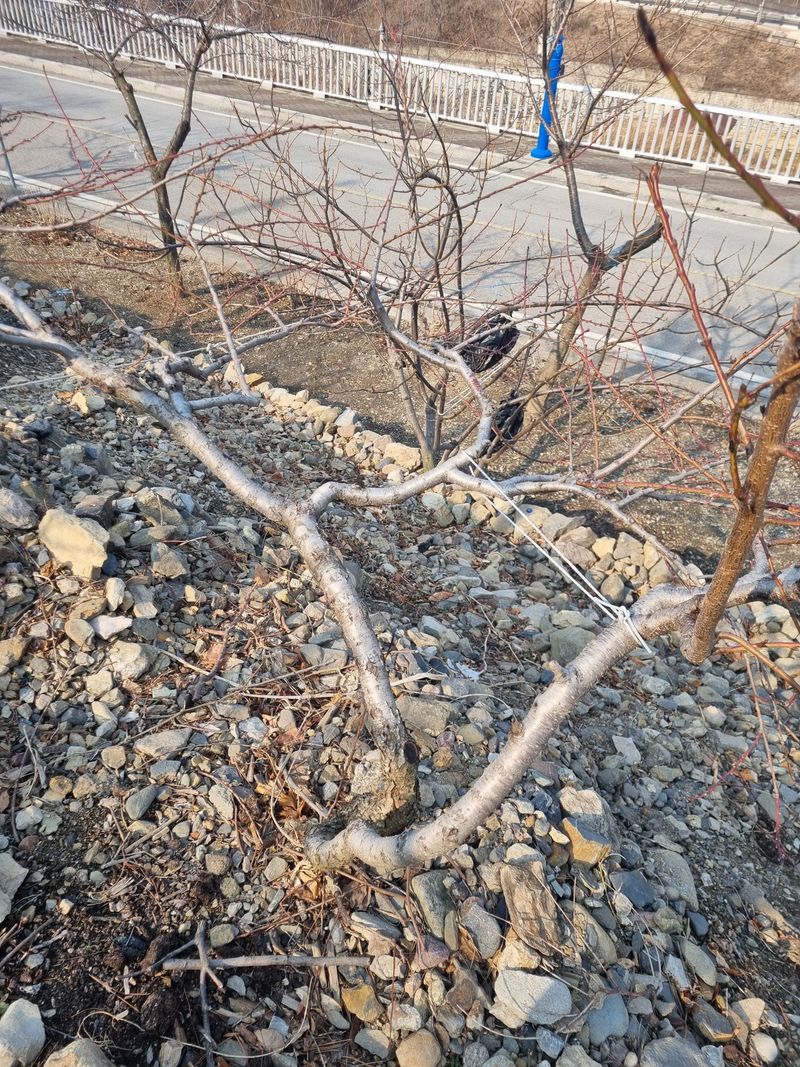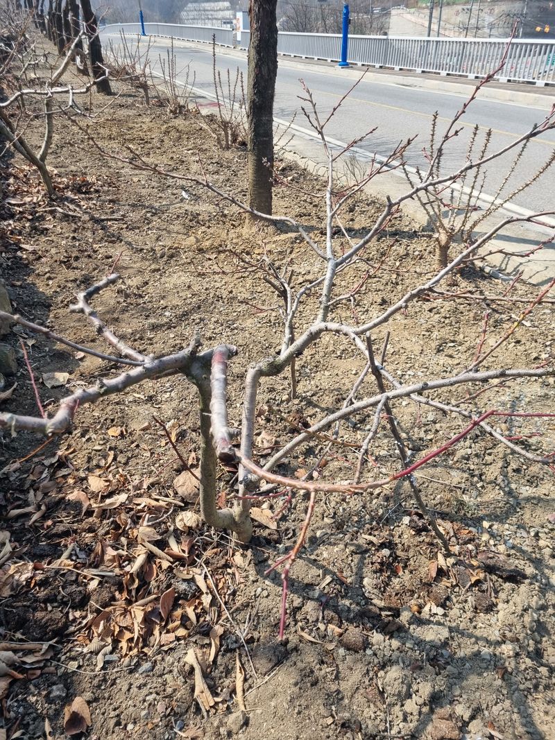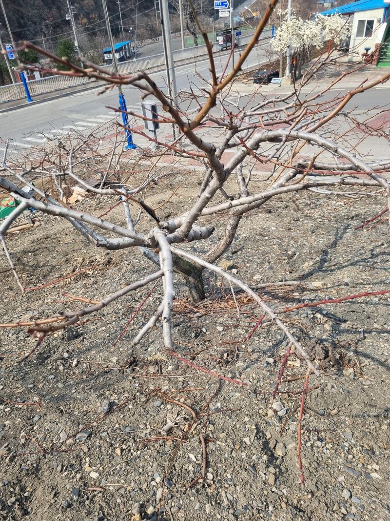 안녕하세요. 이곳도계 따뜻한 봄같슴니다. 저희집앞 도로건너 과수나무밭 윗편에식재된아몬드나무1주 복숭아나무1주 첨부사진처럼 가지치기 하였음니다.