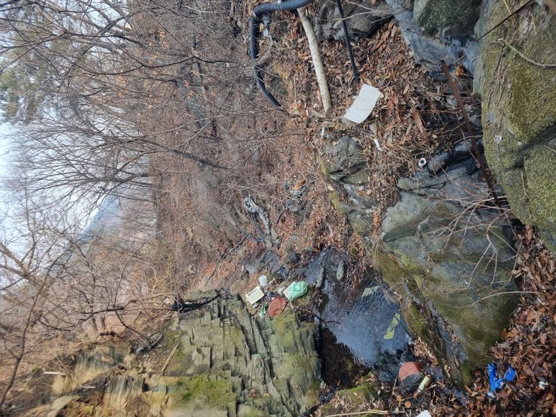 안녕하세요. 여기 도계날씨 한겨울임니다.이따금 칼날같은 회오리 바람 주위비닐 쓰레기 가지고 장난 치네요. 오늘은 농작업은 포기 상태죠. 오늘저희집앞 도로건너 과수 순회중 급경사지에 첨부사진처럼 감 밤나무사이로 돌이 굴러떨어진것 바람에 비닐등 쓰레기 나무가지에 걸려있는...