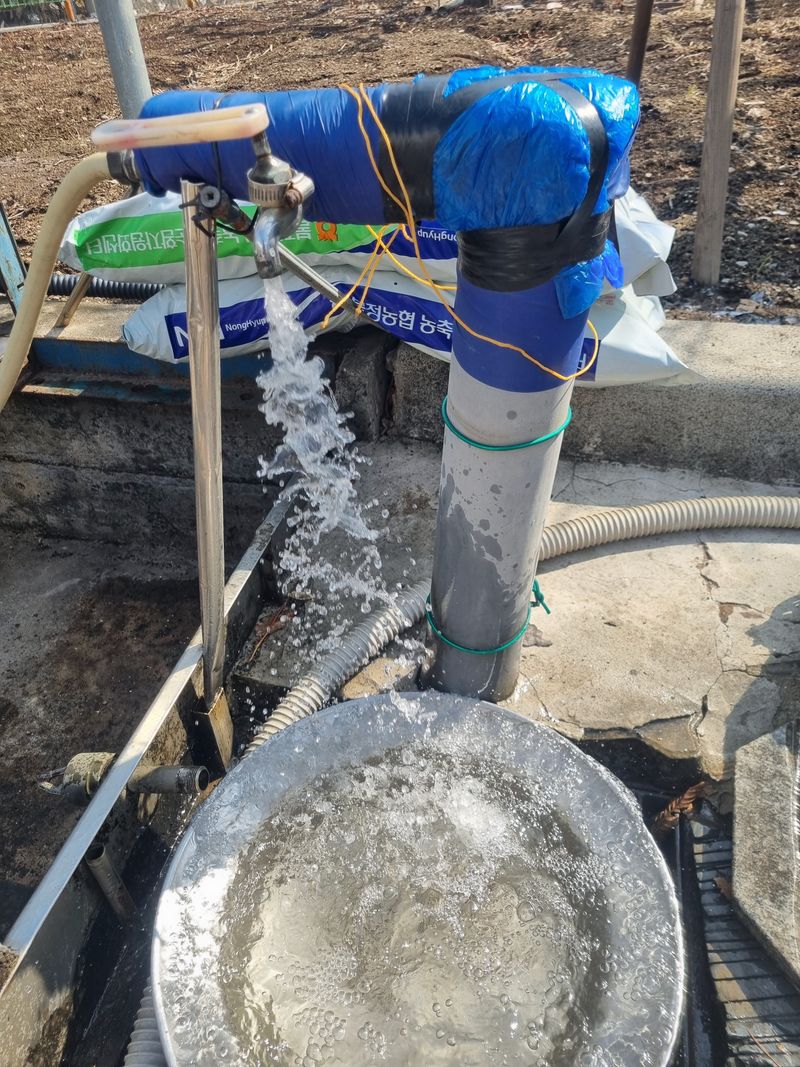 안녕하세요. 오늘 도 예보에 눈.비.내림임니다. 하지만 계속 기다림보다 또다시 자연수 끌어 오자면 어차피 파이프 배관작업을 세심히 잘 하여야 되는데 현재 저희가 다시 배관 입수 결과 어디선가 미세하계 공기가 누수되는 의심가는것임니다. 내일이라도 재점검 실시하여 공기...
