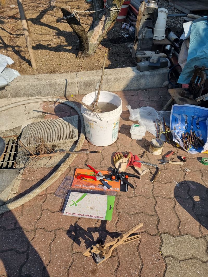 안녕하세요. 오늘은 첨부사진처럼 저희복숭아나무또단감나무 잔가지치기 마무리짓고 접목에 적당한가지들을 채취하여 잘라 낸 그자리에는 톱신베스트를발라서 마감처리 다음1차로 물뿌린후 신문지로포장 다음2차로 공기가 못 통하도록 비닐봉투에담아 냉장보관처리 하였음니다.