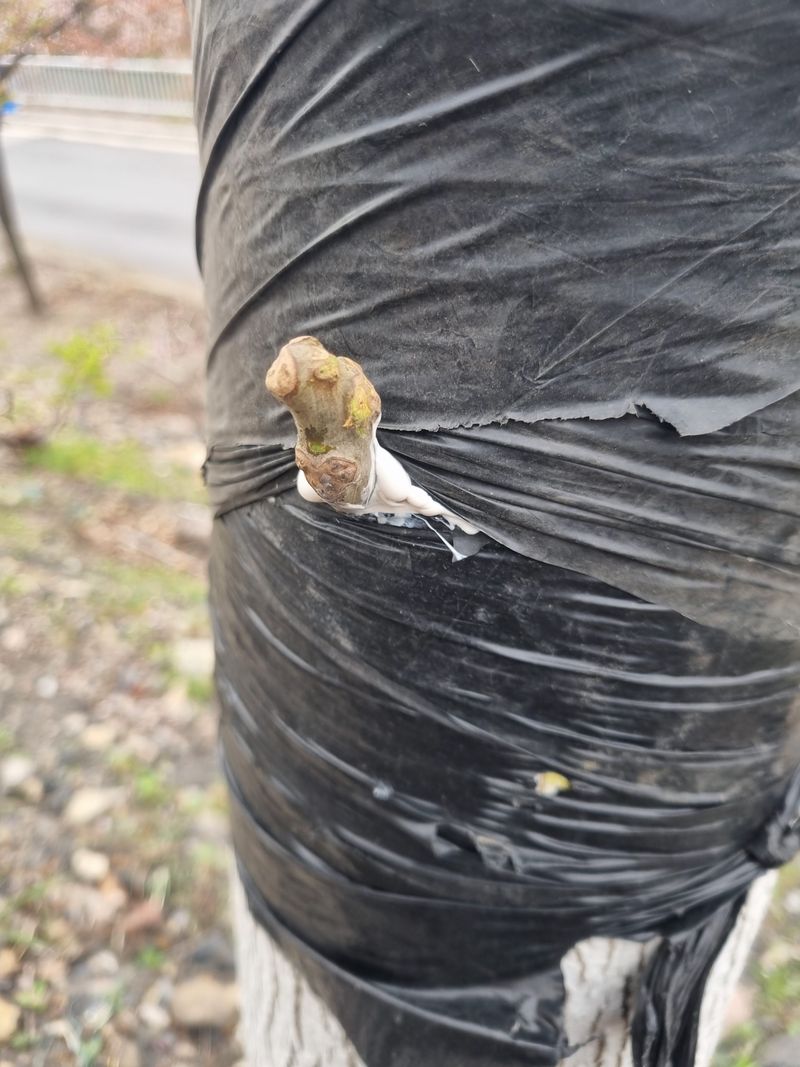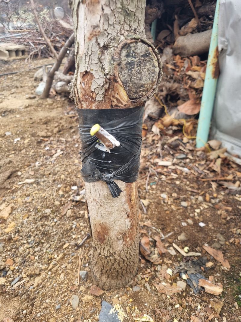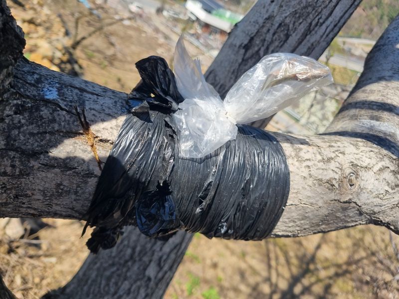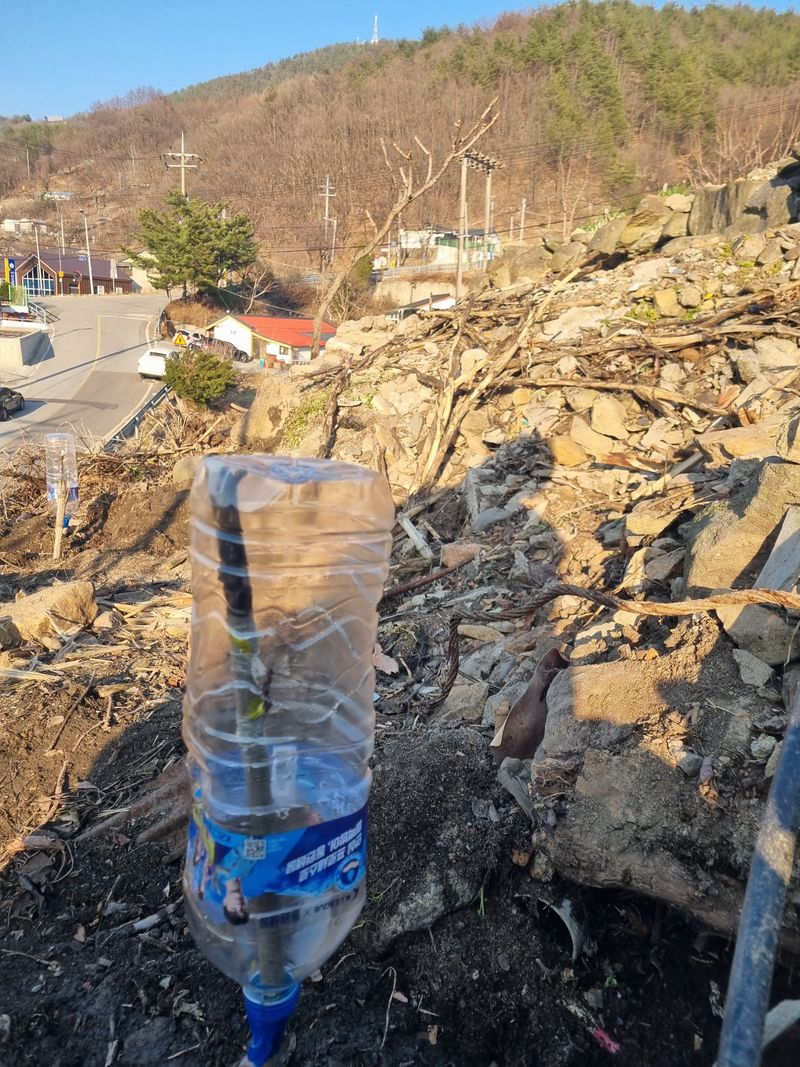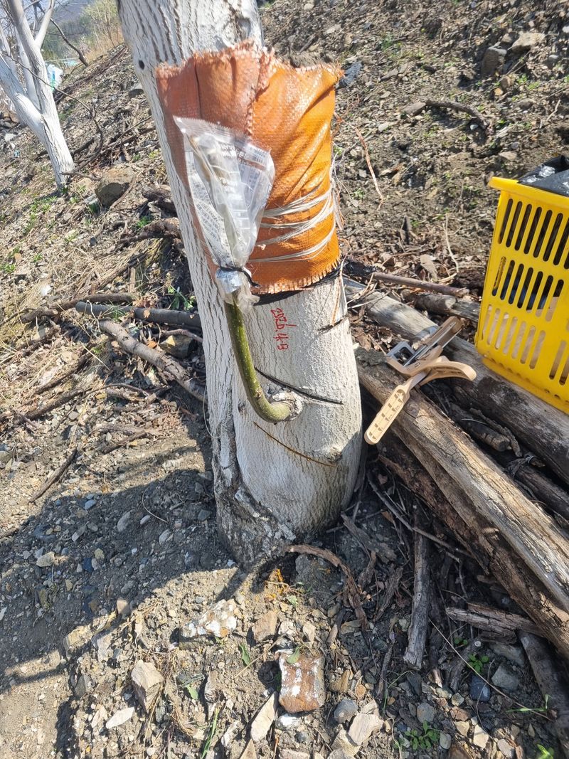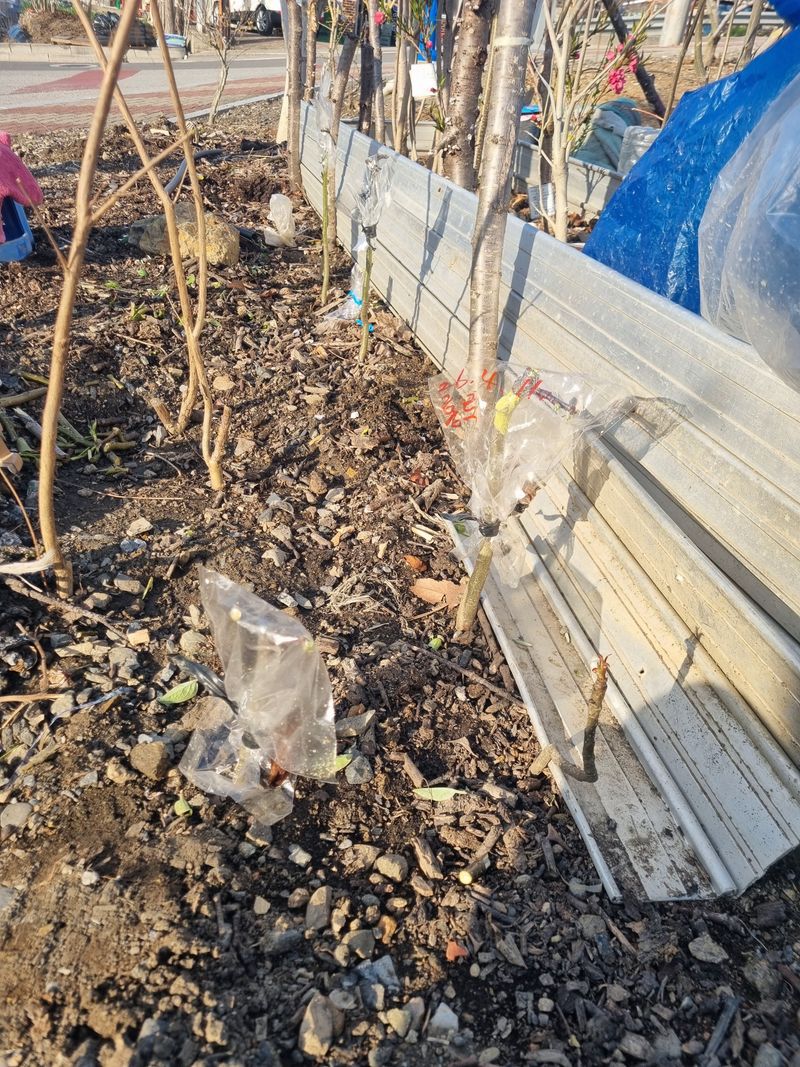 안녕하세요. 이곳도계 날씨 봄이 도착한것 같아요. 저희 도계읍에서 오늘아침 묘목나눔행사를 하였음니다. 이에 저희가 청매실나무 3주가저와 즉시 보관중인 접수 복숭아 살구나무함께 접목후 첨부사진처럼 p 빈병을 꺼꾸로 뒤집어쒸워서 접수 부위를 보호토록 조치후 저...