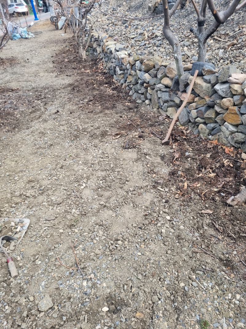안녕하세요. 오늘은 저희 때마침 비 내리길 기다리고있는데 비 내렸어요. 오후늦게 잠시동안 비 그침을이용하여 저희집앞 도로건너 가드레인밖에 3종접목 성공된 (복숭아 자두 살구스위트골드나무) 주위로 잡초제거 와 자갈돌 등 제거작업 하였음니다.