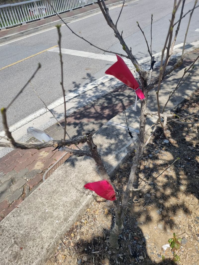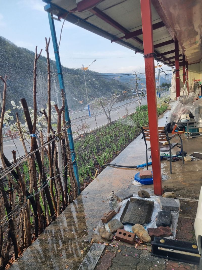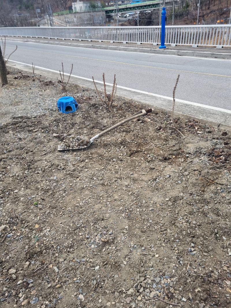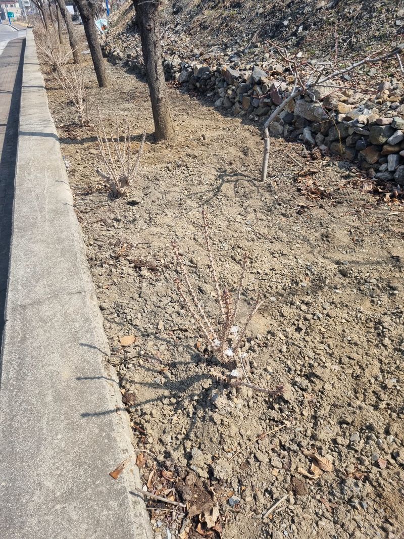 안녕하세요. 여기삼척도계 따뜻한 봄날같았음니다. 오늘은 저희집앞 도로건너 바로도로변에 가로수인벗나무 사이로 저희엄나무 사이 뒷줄 복숭아 살구스위트골드나무 사이로 잔풀.자갈 버려진 쓰레기 모두 첨부 사진처럼 제거하였음니다.