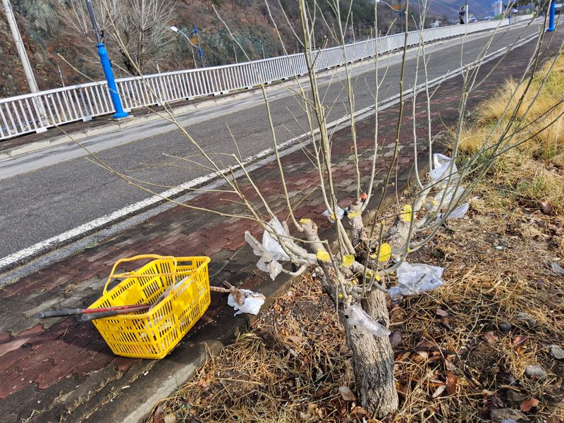 안녕하세요. 이곳도계 에도 강추위 임니다 오후부터 설마하고 저희집앞 도로건너 울타리형 가드레인밖에 끝자락에 대왕감나무 1주 흑감나무 1주 가지치기를 추위때문에 간신히 마치고 첨부사진처럼 작업 중단 하였음니다.