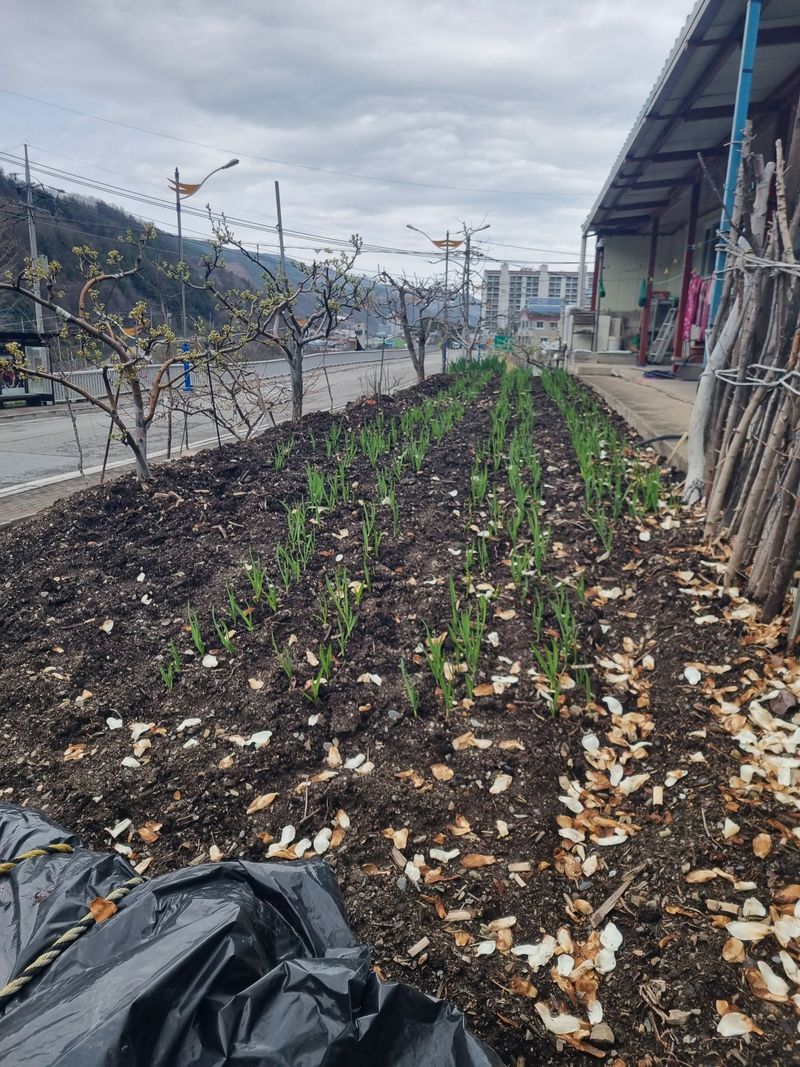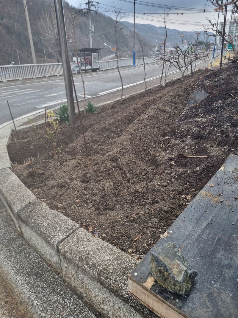 안녕하세요. 여기삼척도계 따뜻한 봄이 왔음니다. 저희집앞 도로변 경계석밖에 저희고추 파종준비로 수작업하여 흑뒤집기 작업하고. 첨부사진처럼 고을 만들기 해 보았음니다.