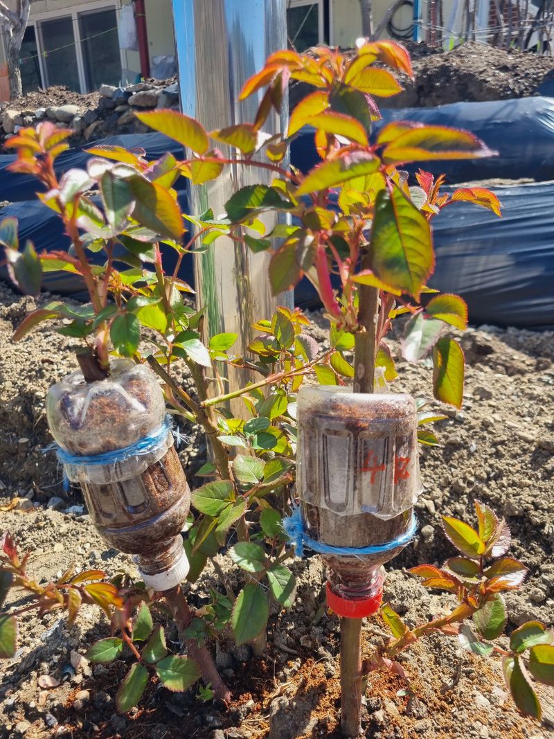 안녕하세요. 저희집앞 도로변 인도경계석밖에다 3년전 찔레나무를 이식하였음니다. 이곳도계 접목이 일찍하지만 실패시 다시 접목코저 앞당겨서 찔레나무 뿌리에다 첨부사진처럼 4주접 해 보았음니다. 사진.p음료수 빈병을 밑부위 잘나내고 접수보호코저 꺼꾸로엎어 놓았어요 사진...