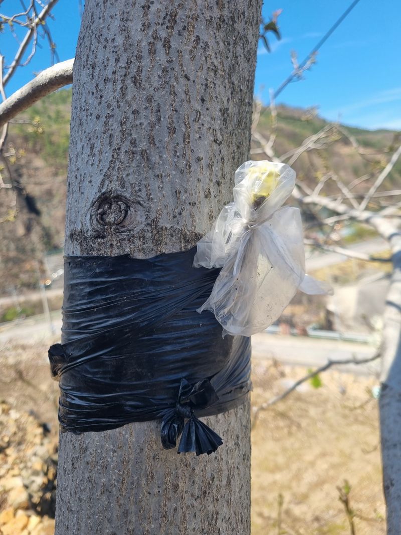 안녕하세요. 이곳도계 날씨 많이 온화되었음니다. 저희집앞 도로건너 과수나무밭 중 경사지 위로 식재된 호두나무에 이미2025년 부터 몇주 베어 내고 또몇주 의심되어서 첨부사진처럼 예방삼아 어제 기록된 처방하에 호두나무 하부 분 1m정도 도색 작업 ...