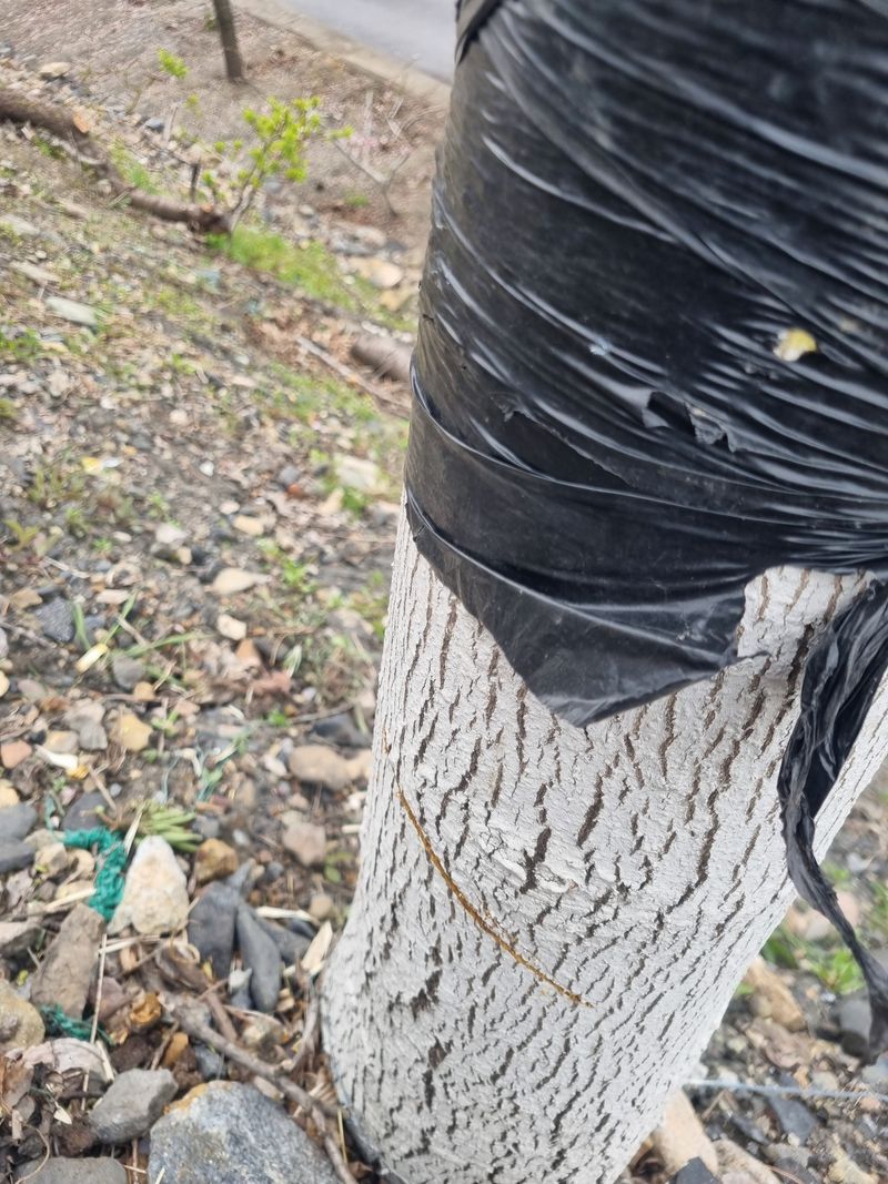 안녕하세요. 여기도 추위 도착 하였음니다. 저희 오늘 집앞도로건너 경사지위로 식재된 호두나무에 좀벌레 의심되는 호두나무에다 외부용 수성페인트 스미치온 칼립소 함께 배합후 첨부영상처럼 나무 하부에 부분 도색 작업 해 보았음니다. 지난해에도 4주는 좀벌레 칩입...