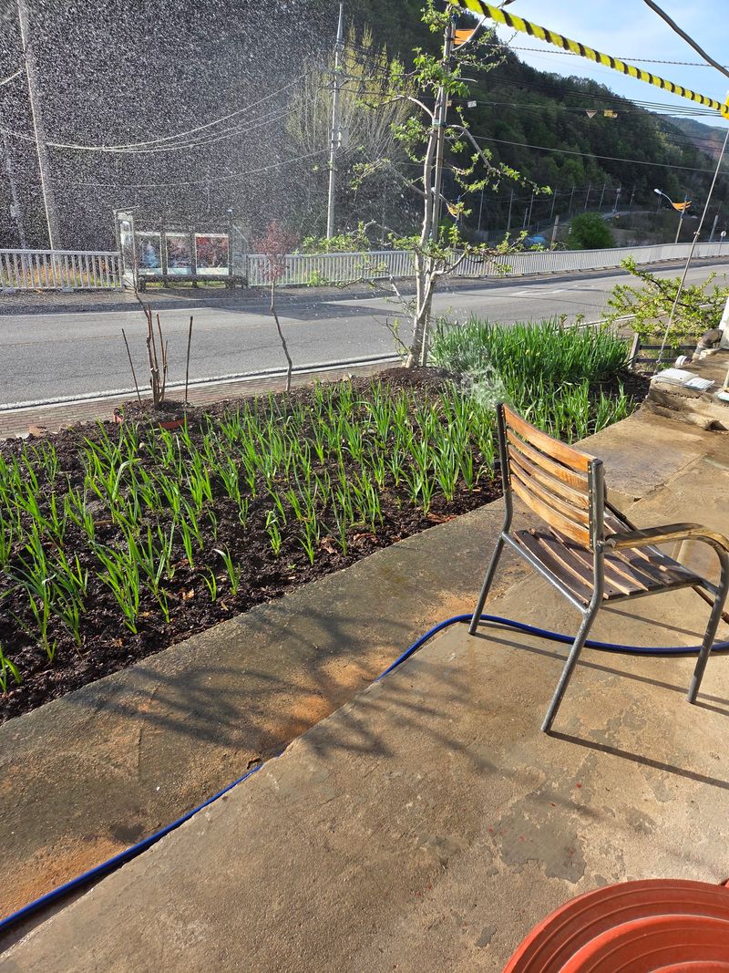 안녕하세요. 이곳도계 비내리다 오후부터 맑아 젔어요. 저희비 그침에 집앞 터밭에 파종된 노지 마늘에다 살균 살충 전착제와 함께 배합후 분무하였음니다. 오후늦게부터 첨부영상처럼 집앞도로건너 과수밭에 나무사이로 찰옥수수 파종하기 시작 하였음니다.