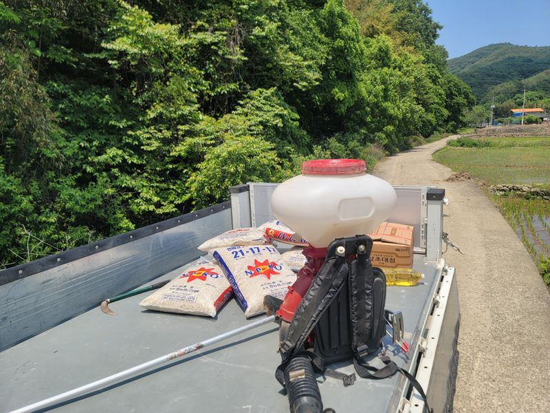 대봉감. 제초작업. 모 피약및비료 뿌림ᆢ
