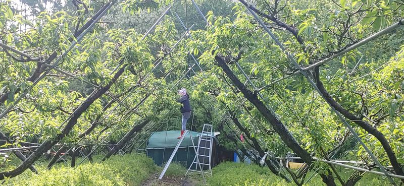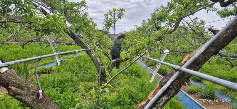 Y자팔매트수형 복숭아 🍑나무 수형잡기 및 하계 정지전정 중입니다.